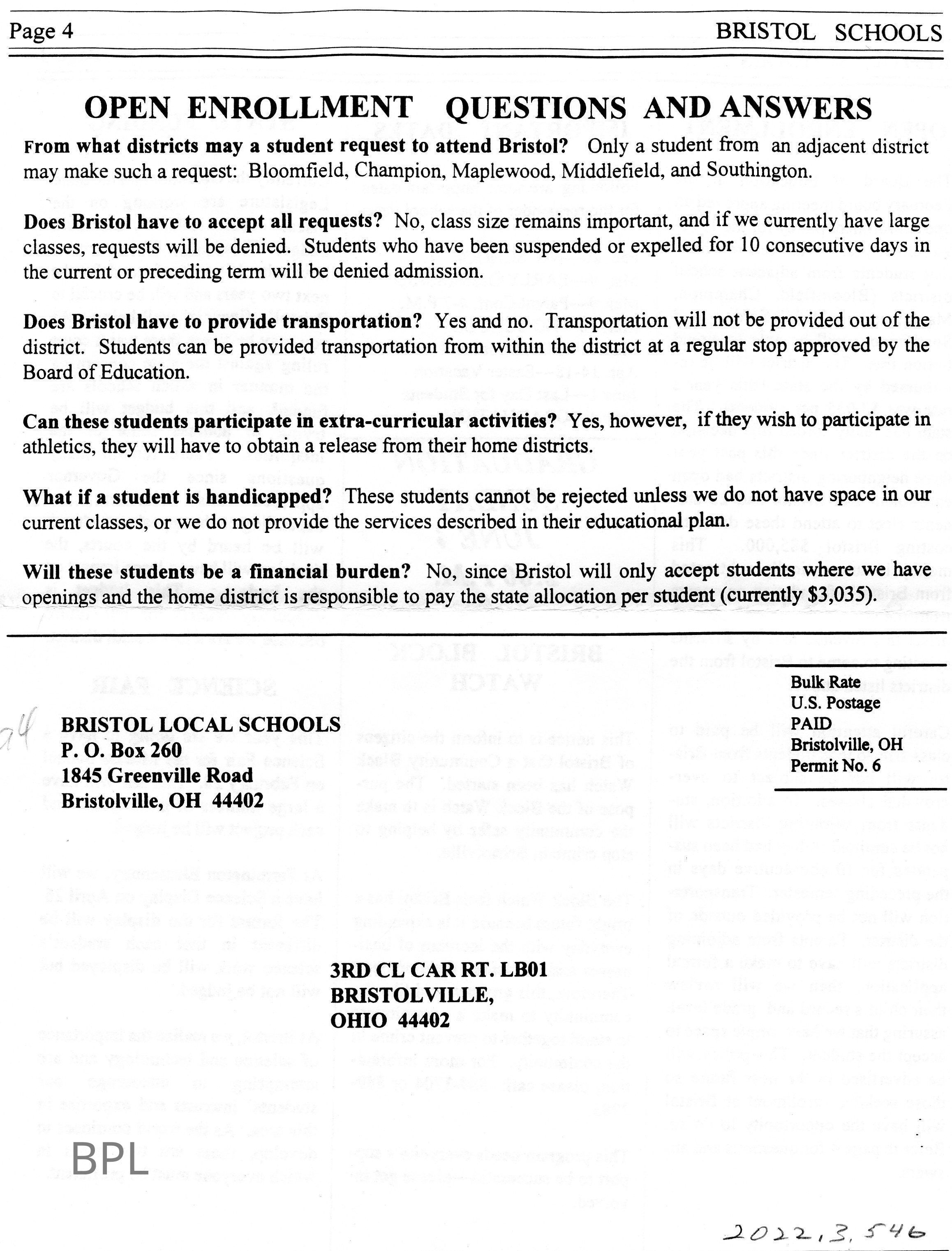 Mailer, Bristol School 1994Entry/Object ID
