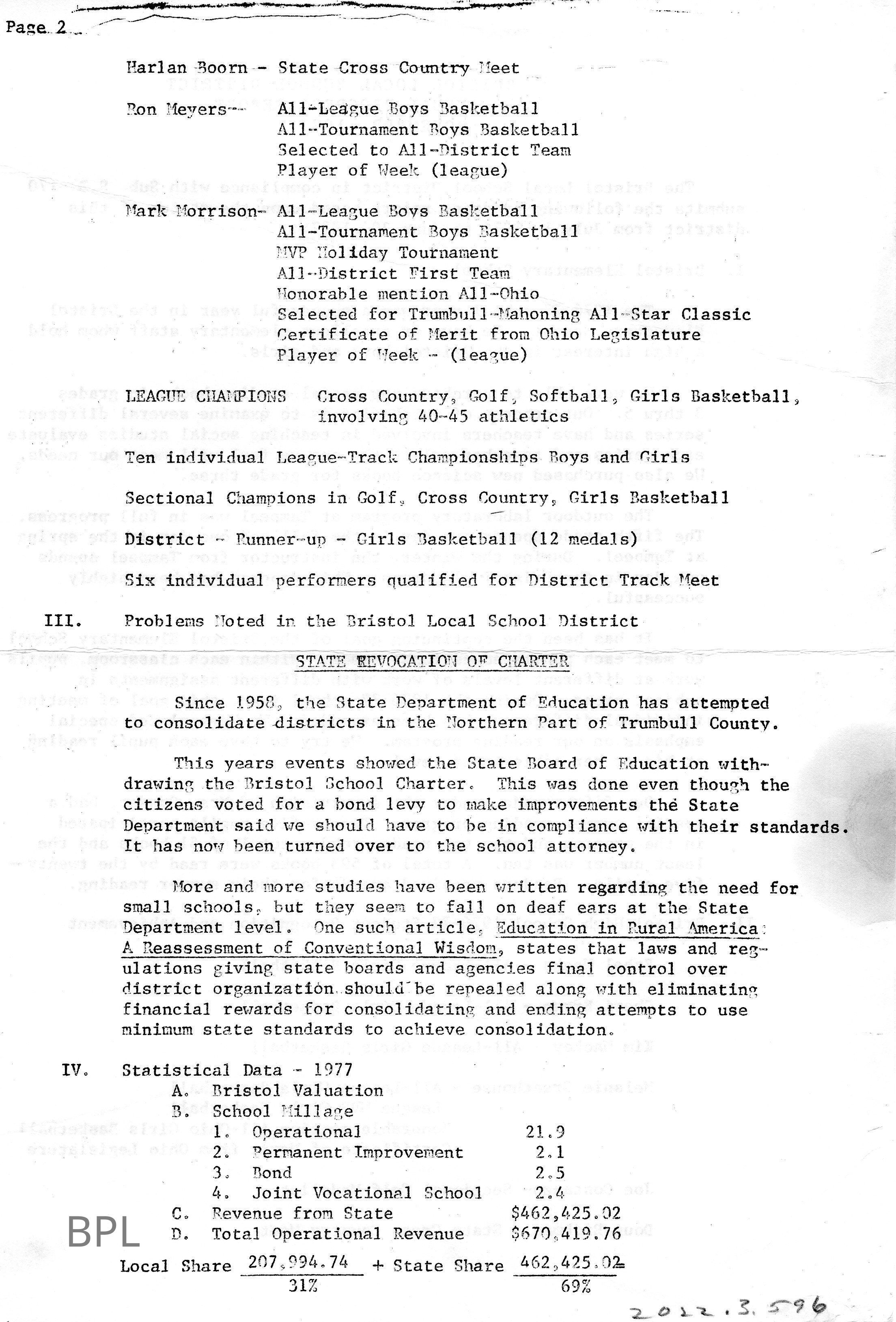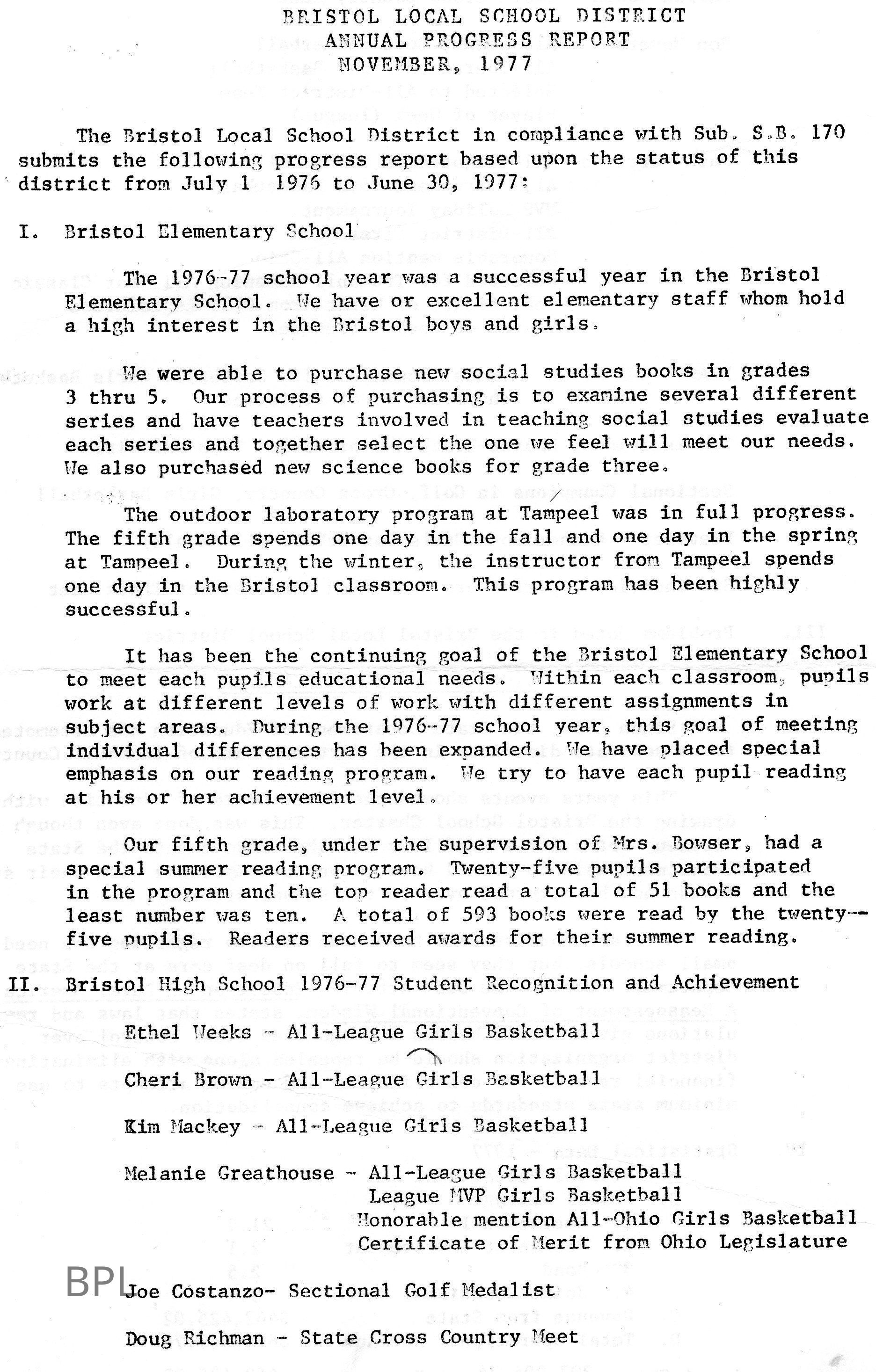 Annual Progress Report Bristol School, November, 1977Cataloged By