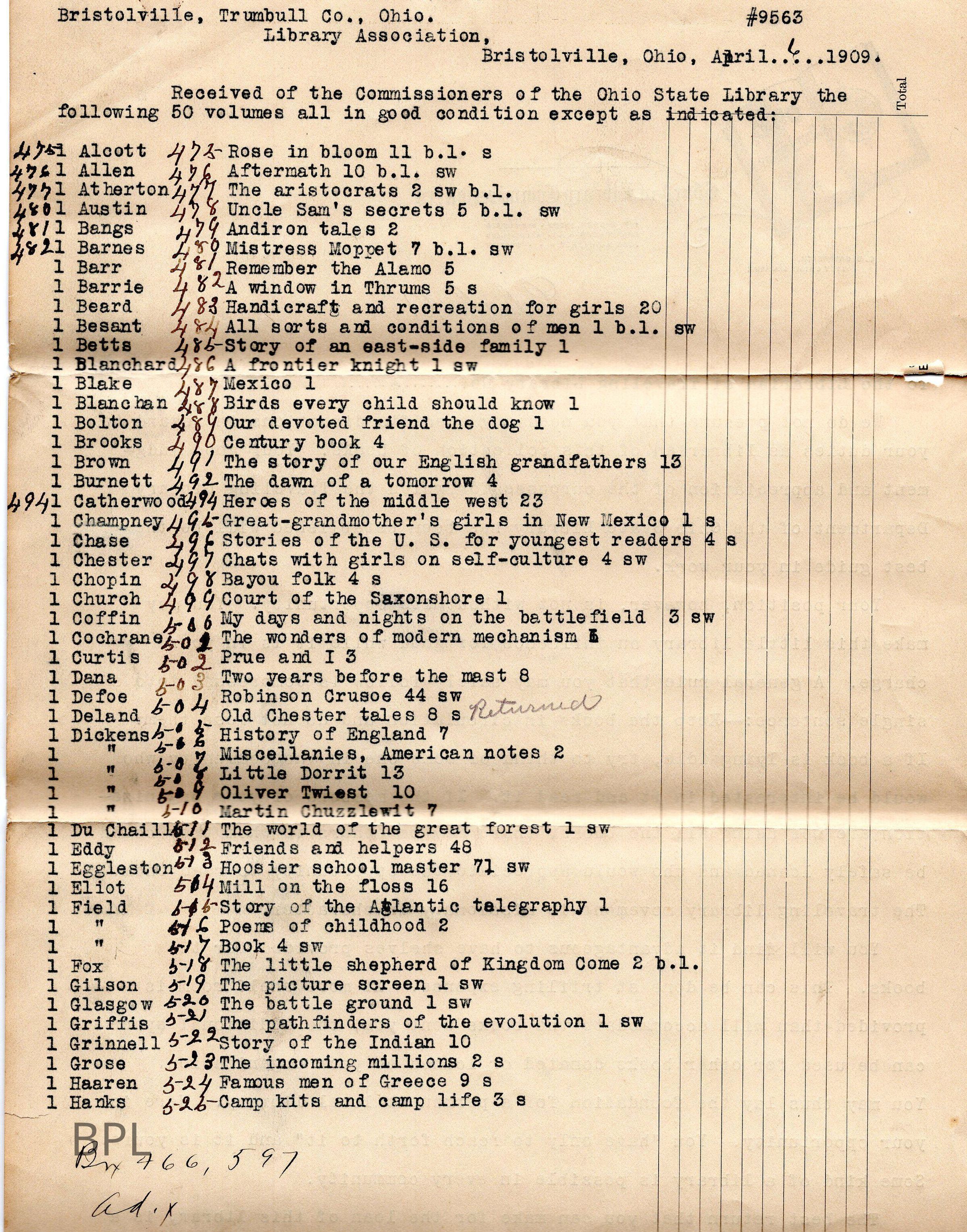 Ohio Board of Library Commissioners, Bristol Trustees Library Association