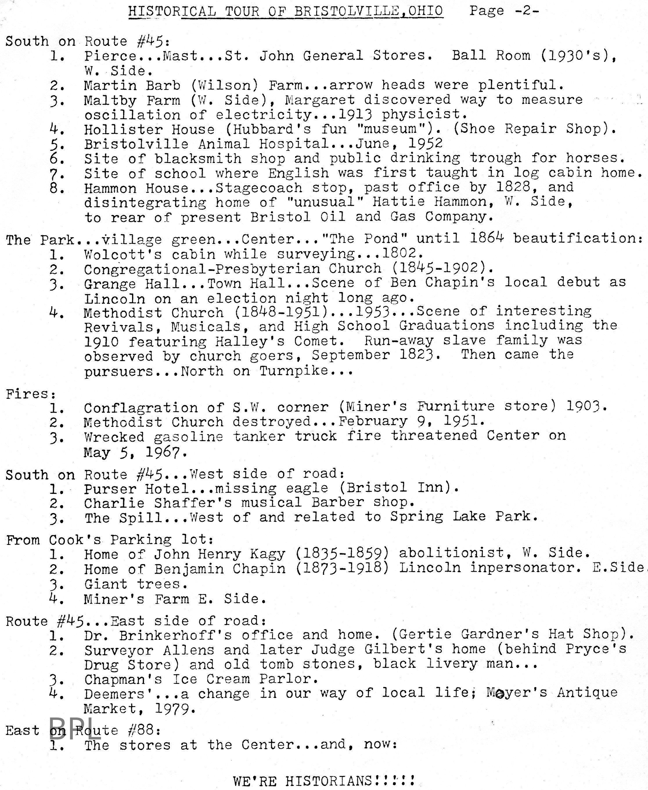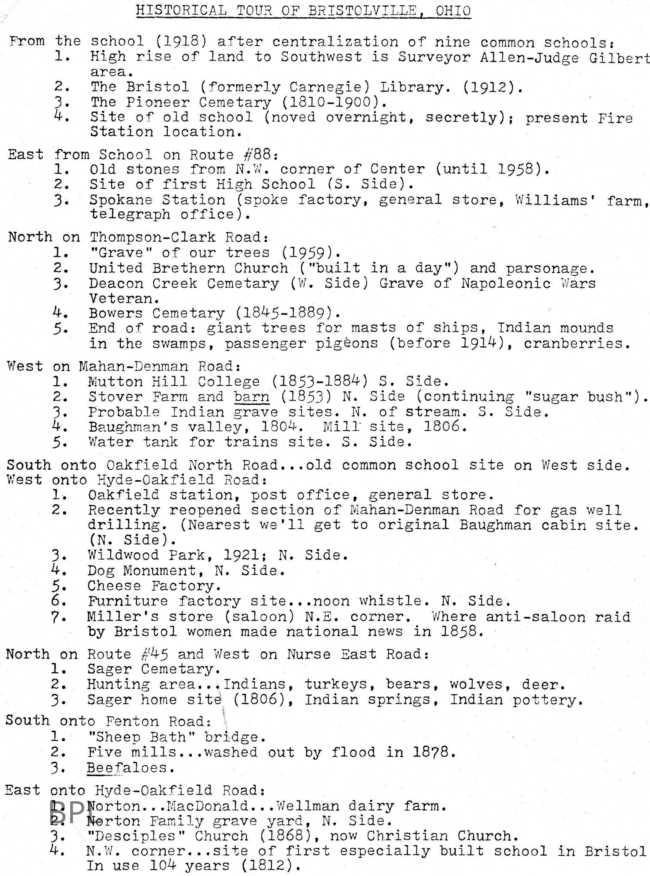 Historical Tour of Bristolville, Ohio OutlineCataloged By