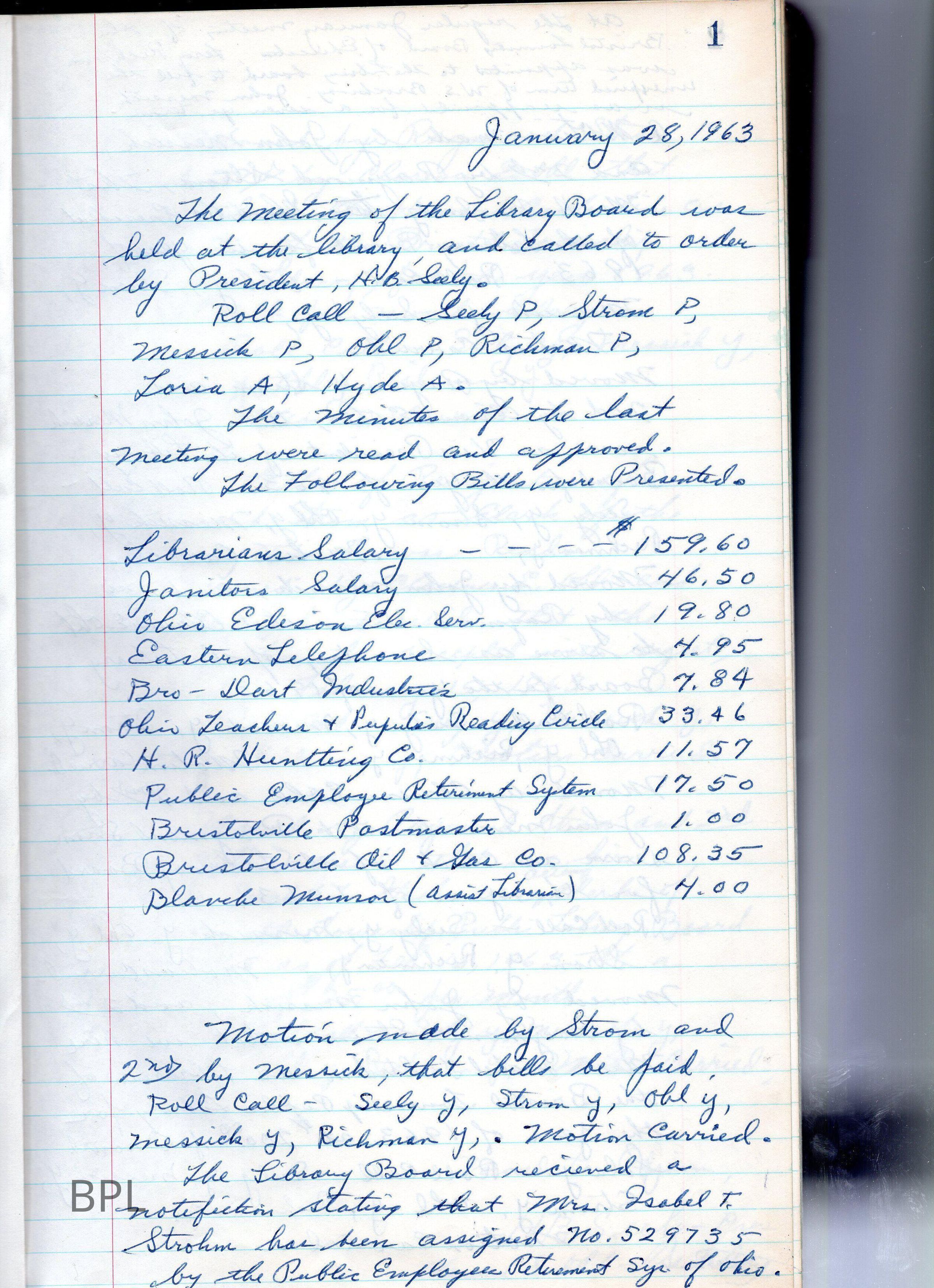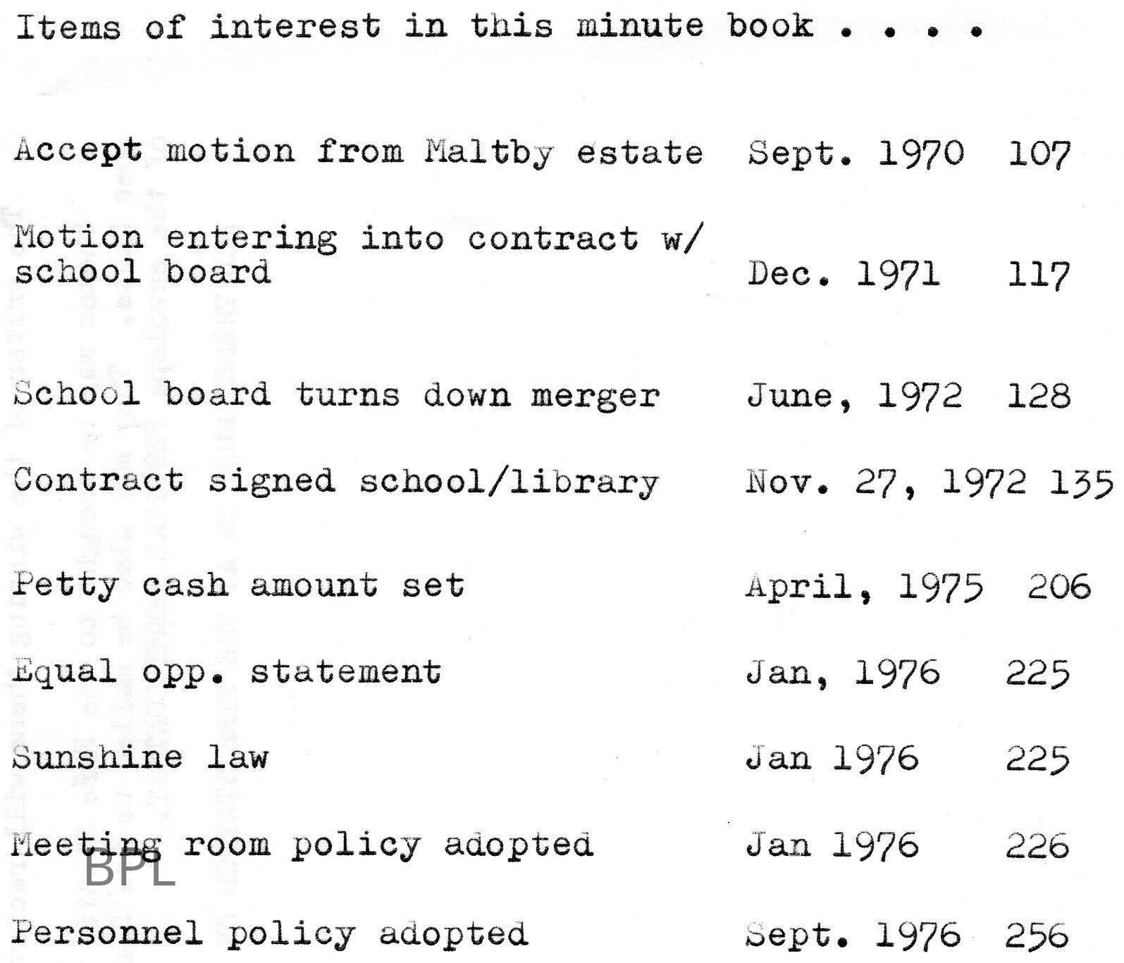 Minutes of Bristol Public Library Board, 1963, 1976Location