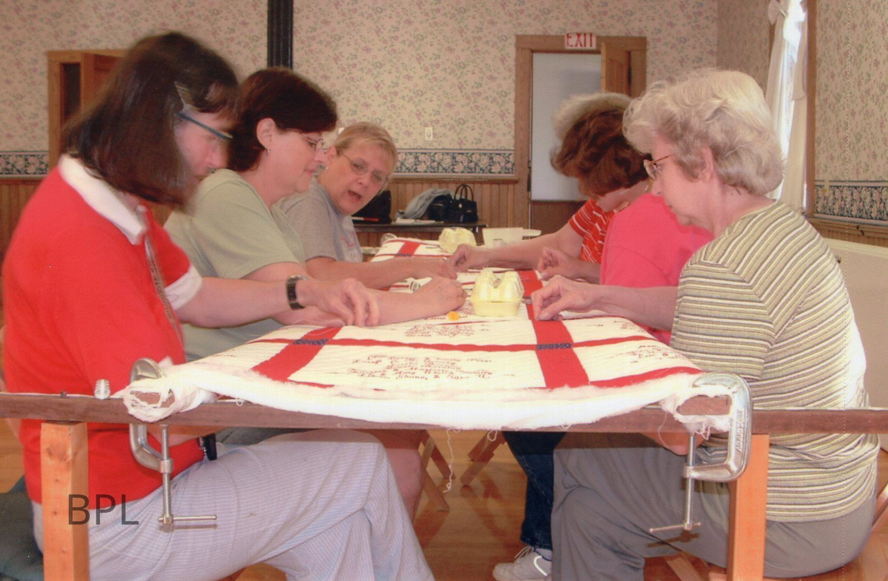 Photo, Bristolville Bicentennial, 2004 Quilt Ladies. Right: Donna Craiger, Theresa Craiger, Roberta Harris, Left: Judi Sheridan, Lori Vaccar, Cheryl FrenchCataloged By