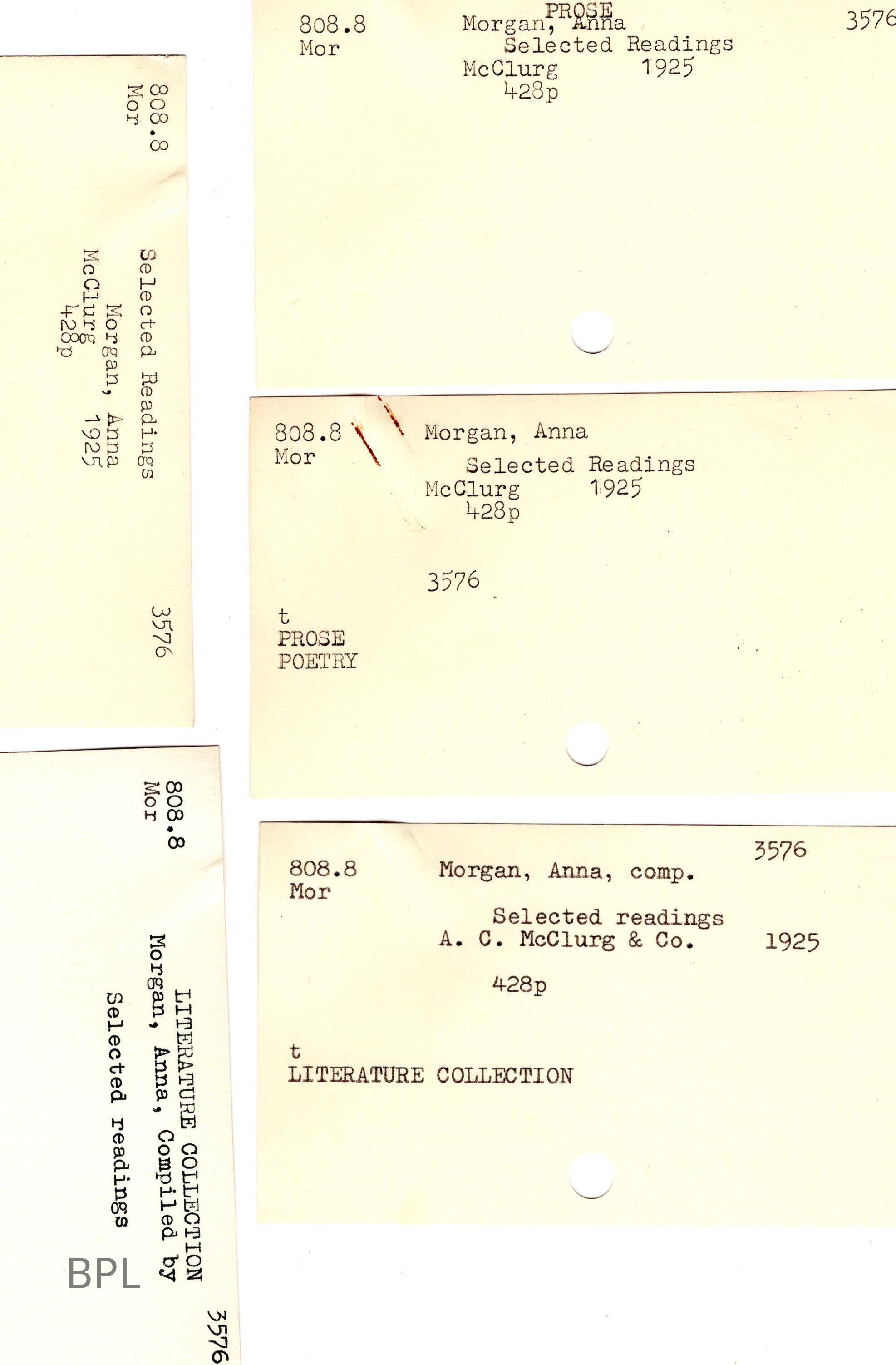 Five Dewey Decimal cardsCataloged By