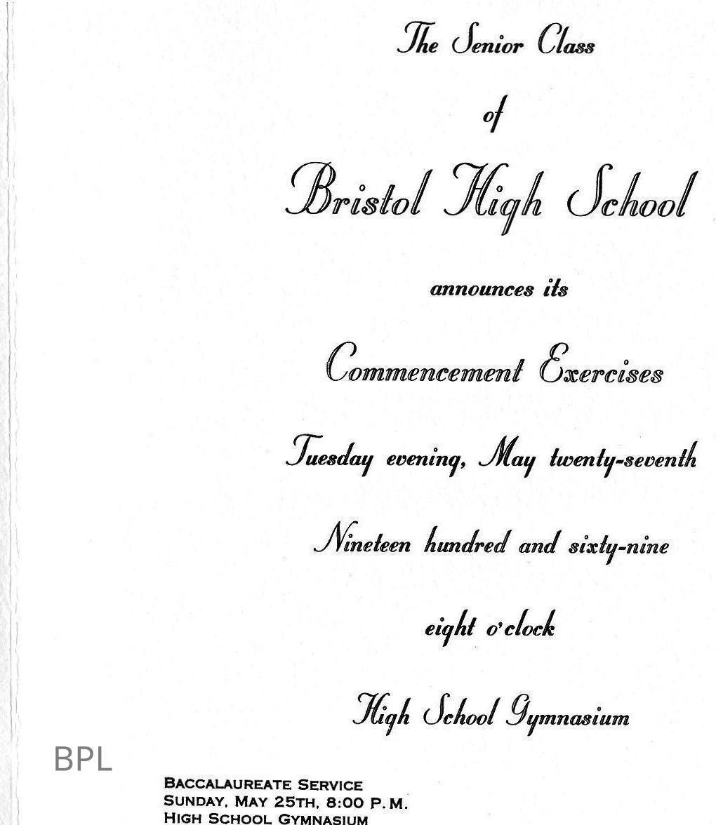 Bristol High SchoolGraduation Announcement, 1969Entry/Object ID