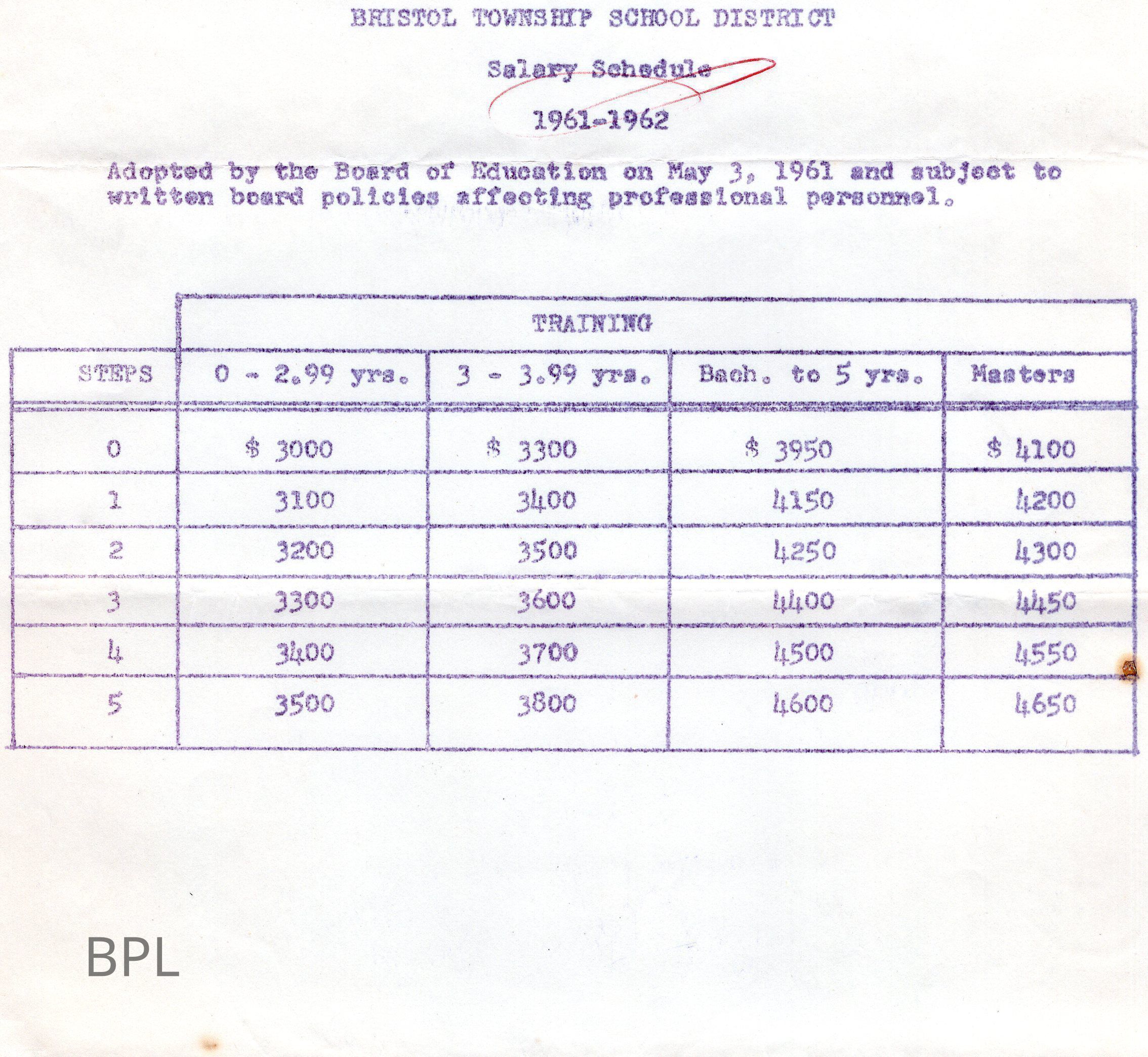Bristol School District Salary Schedule 1961-1962Cataloged By