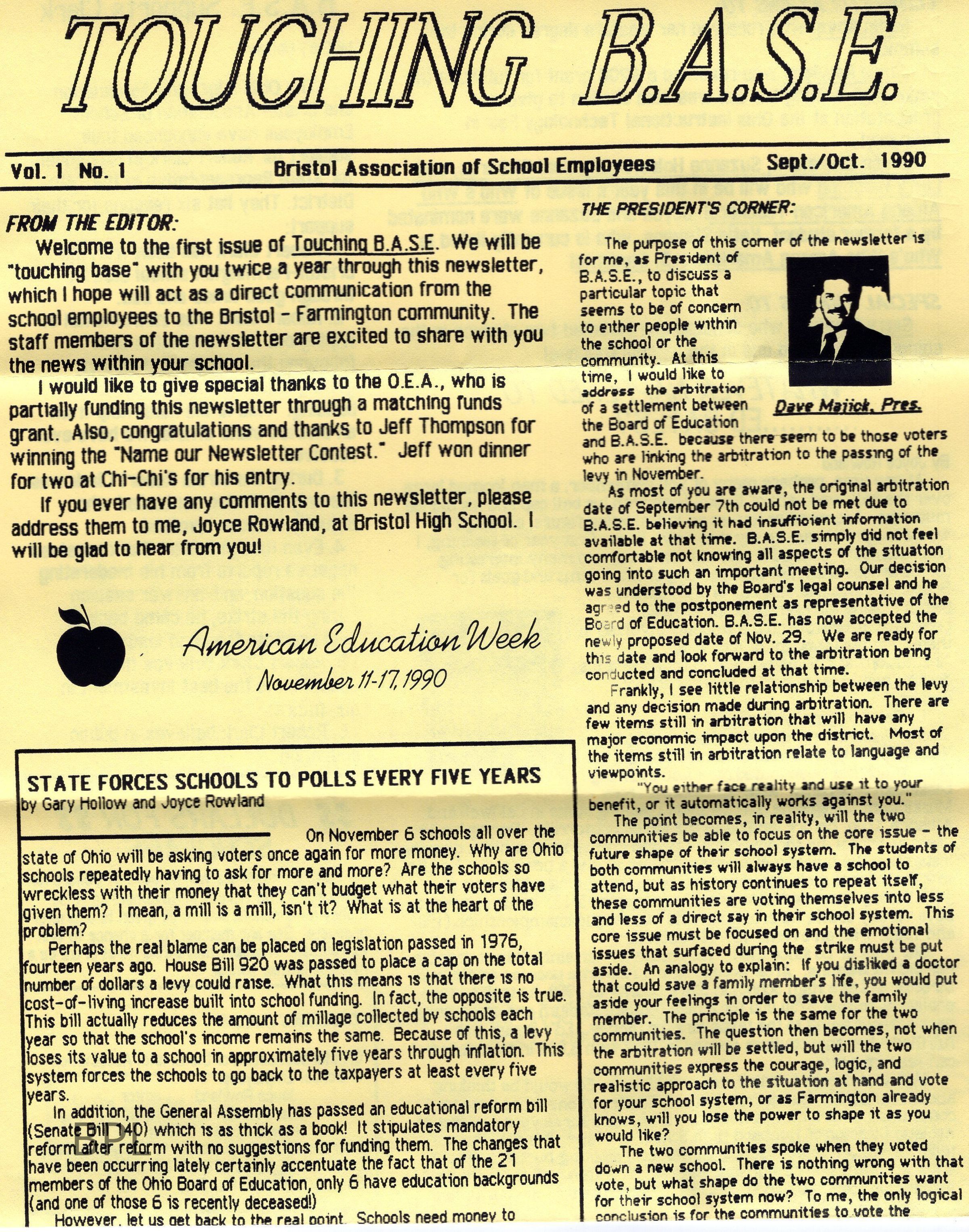 Mailer, November 3, 1990, from Bristol Association of School EmployeesCataloged By