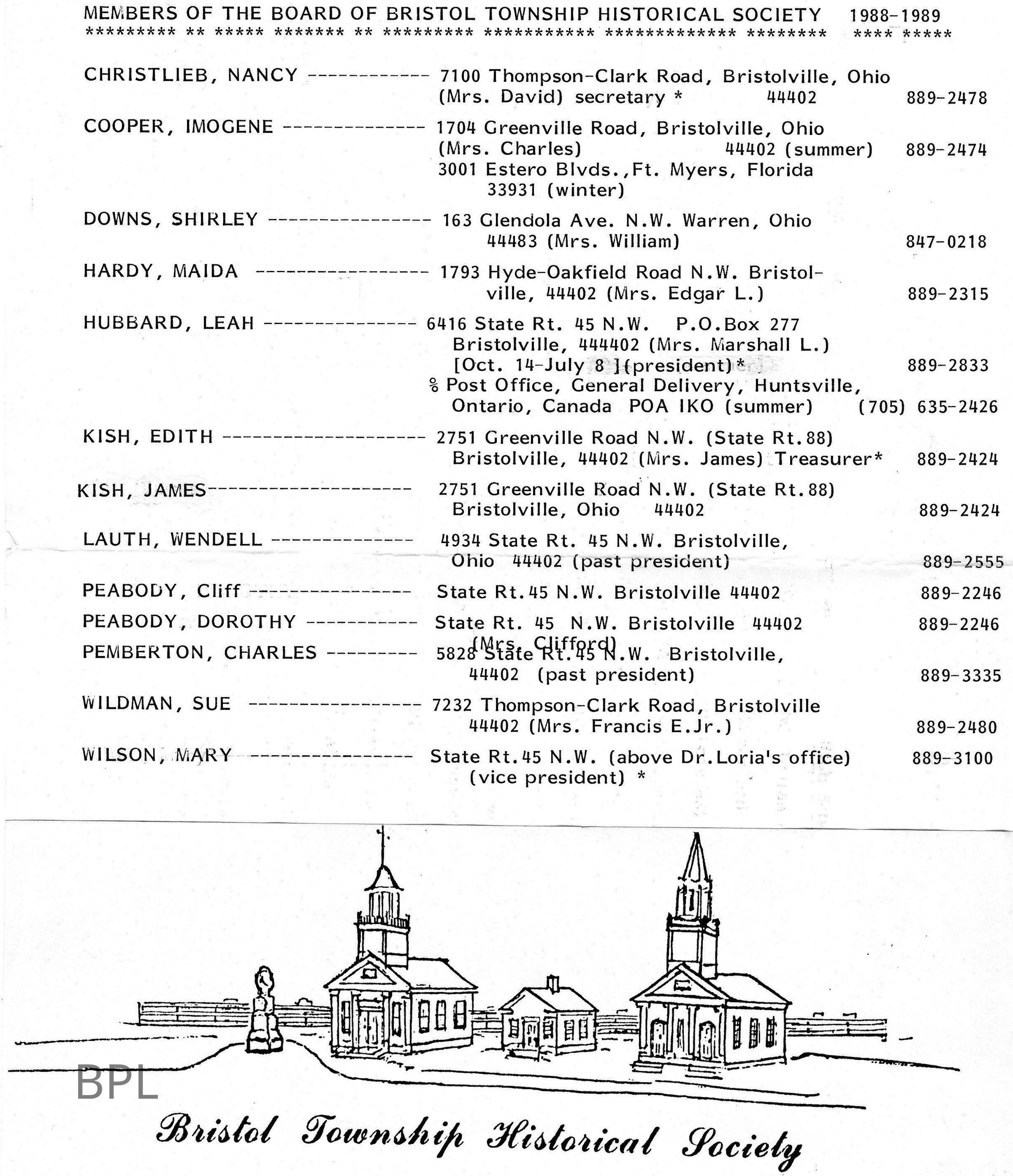 Bristol Township Historical Society, Christlieb, Nancy, Cooper, Imogene, Downs, Shirley, Hardy, Maida, Hubbard, Leah, Kish, Edith, Kish, James, Lauth, Wendell, Peabody, Cliff, Peabody, Dorothy, Pemberton, Charles, Wildman, Sue, Wilson, Mary