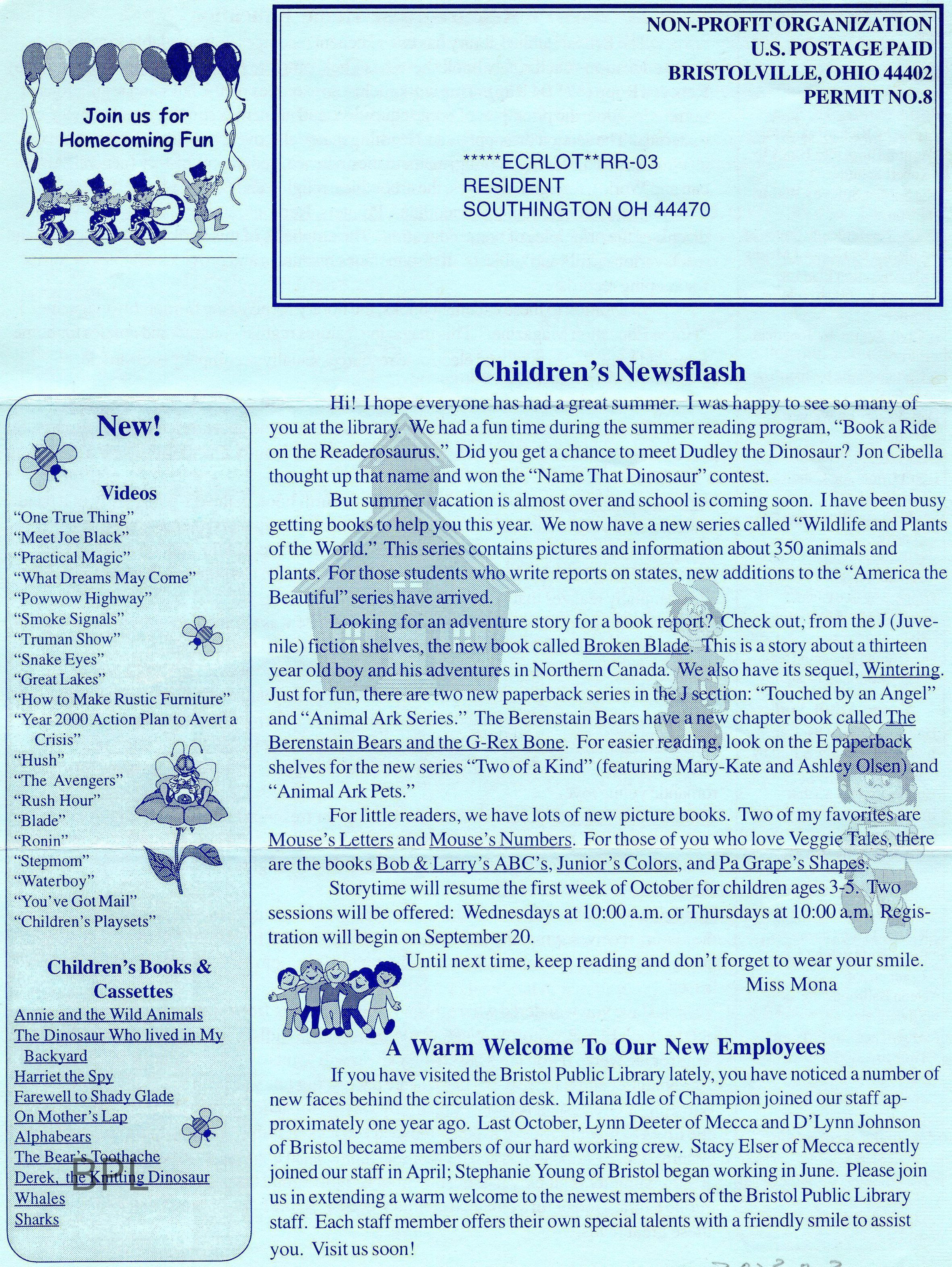 Newsletter, Friends Bristol Public Library, 1999Entry/Object ID