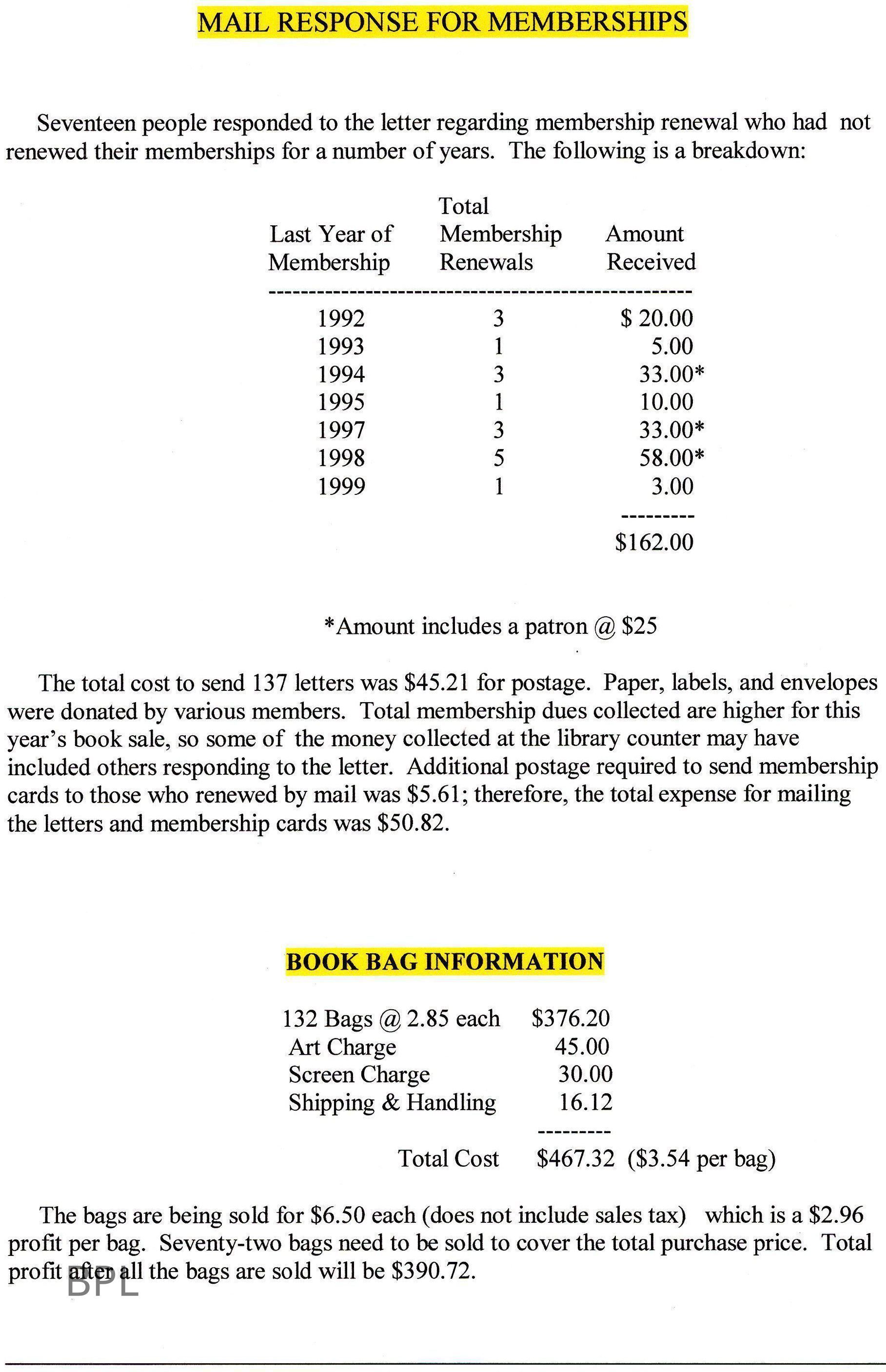 Yearly Information, Friends Bristol Public Library, 2000Entry/Object ID