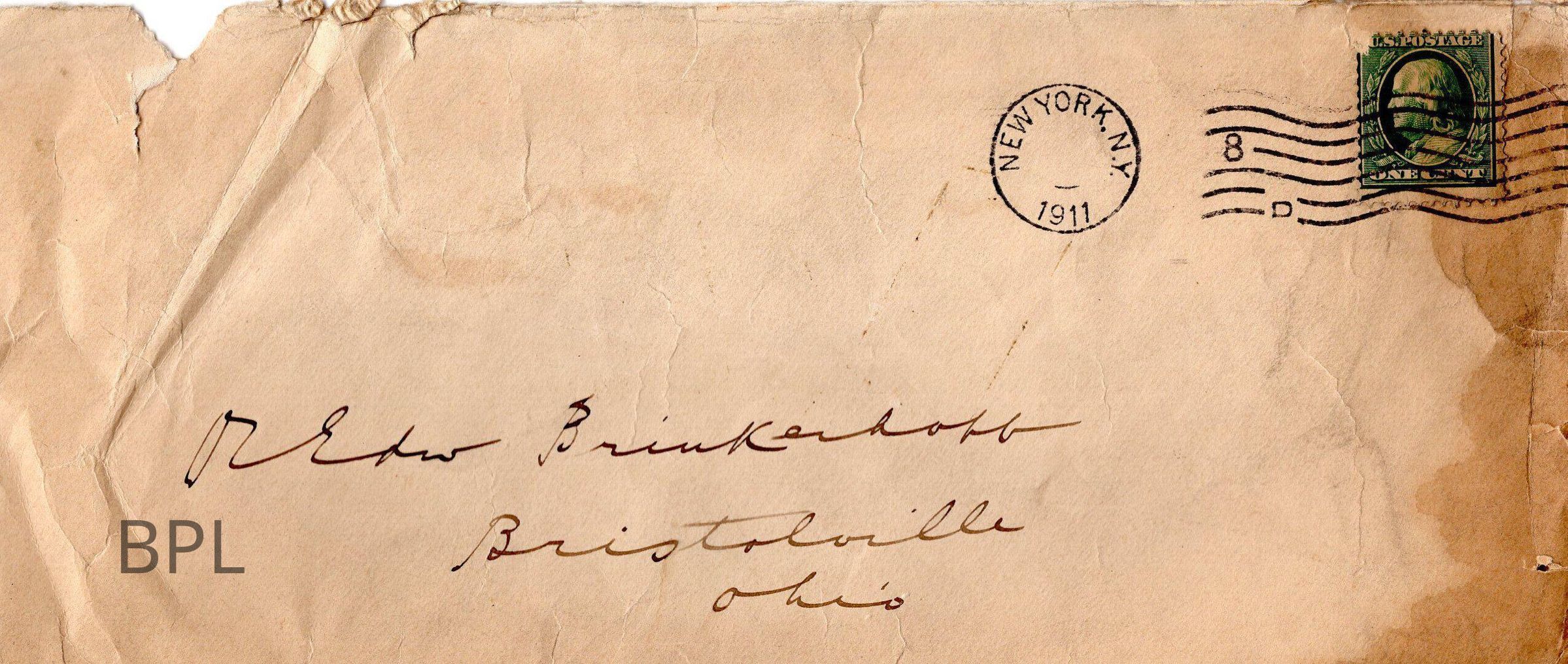 Envelope addressed to Dr. Edward Brinkerhoff, 1911 with notes on back.Cataloged By