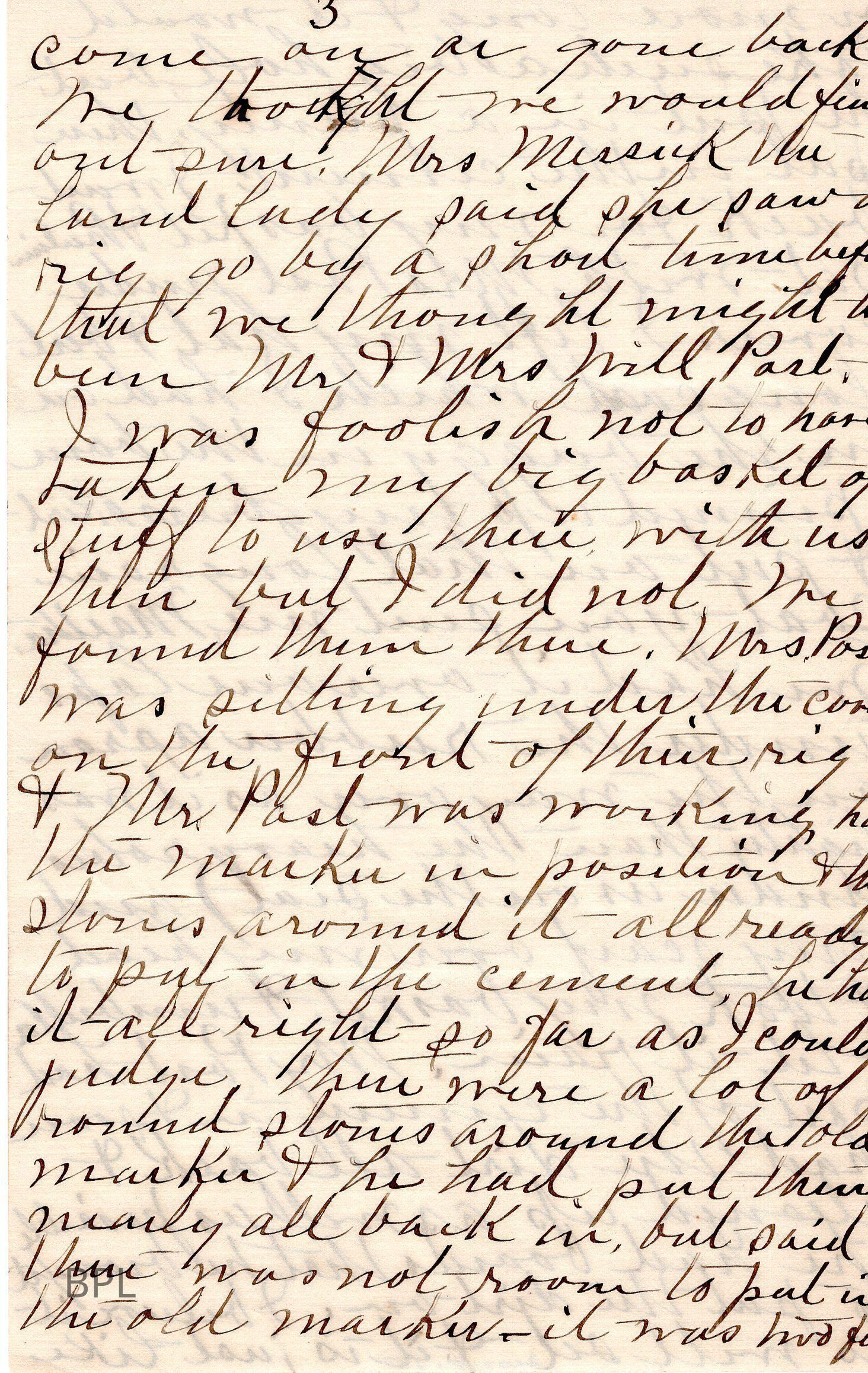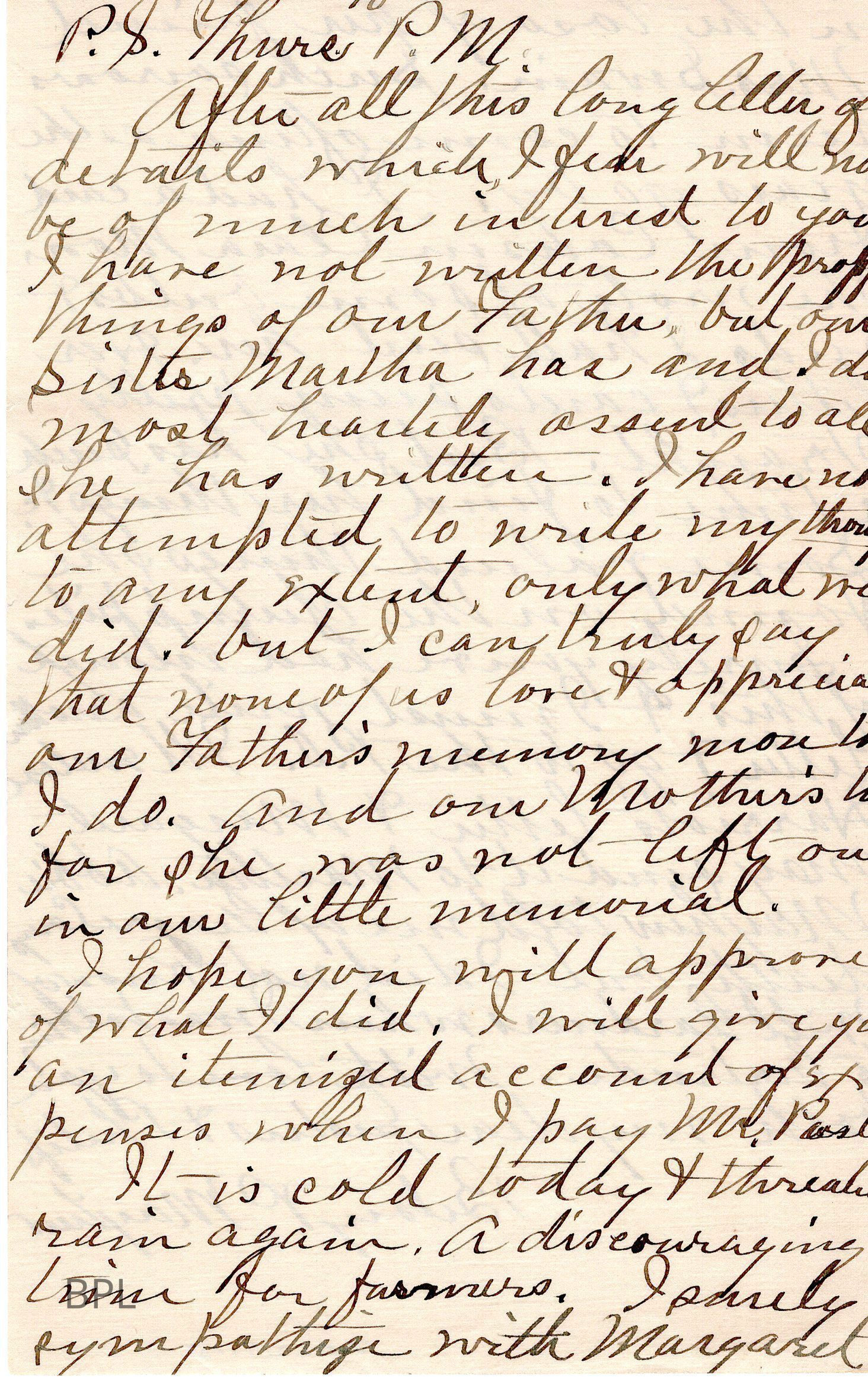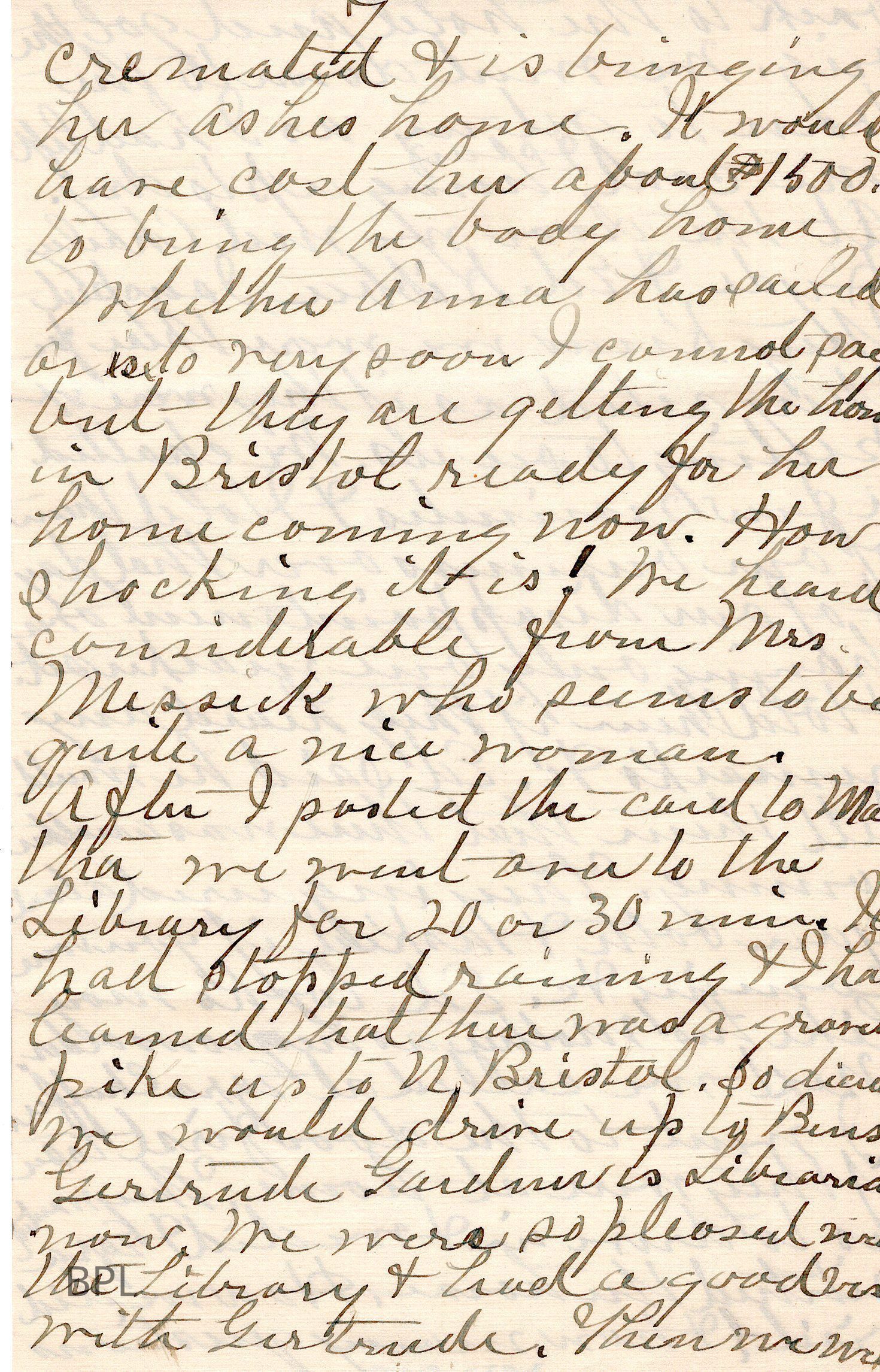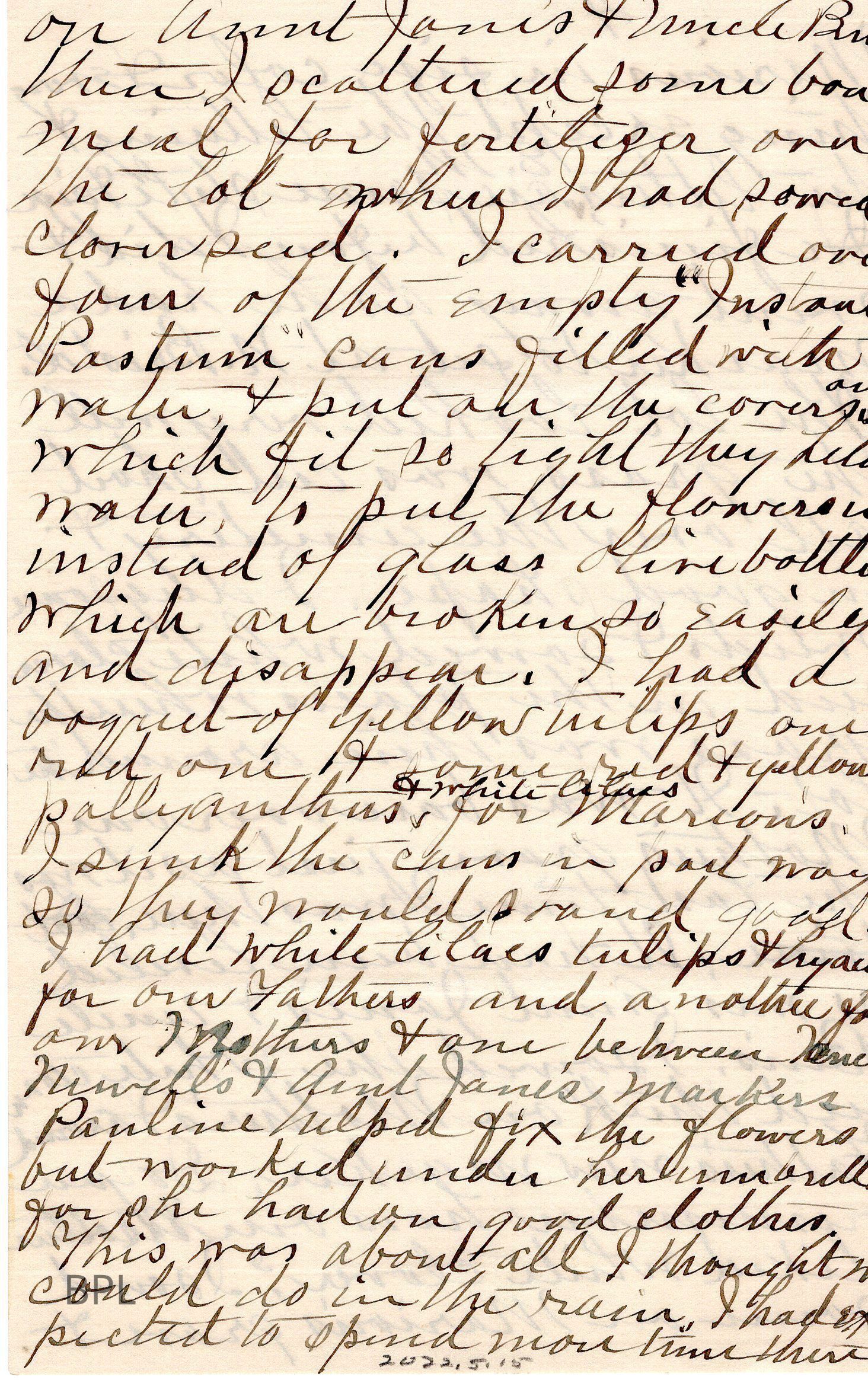 Letter from Betsy Patchen Mayhew to her sister, Martha Maltby, May 13, 1914, regarding Headstone at Evergreen Cemetery for their Mother. Ten Pages, (both sides)Cataloged By