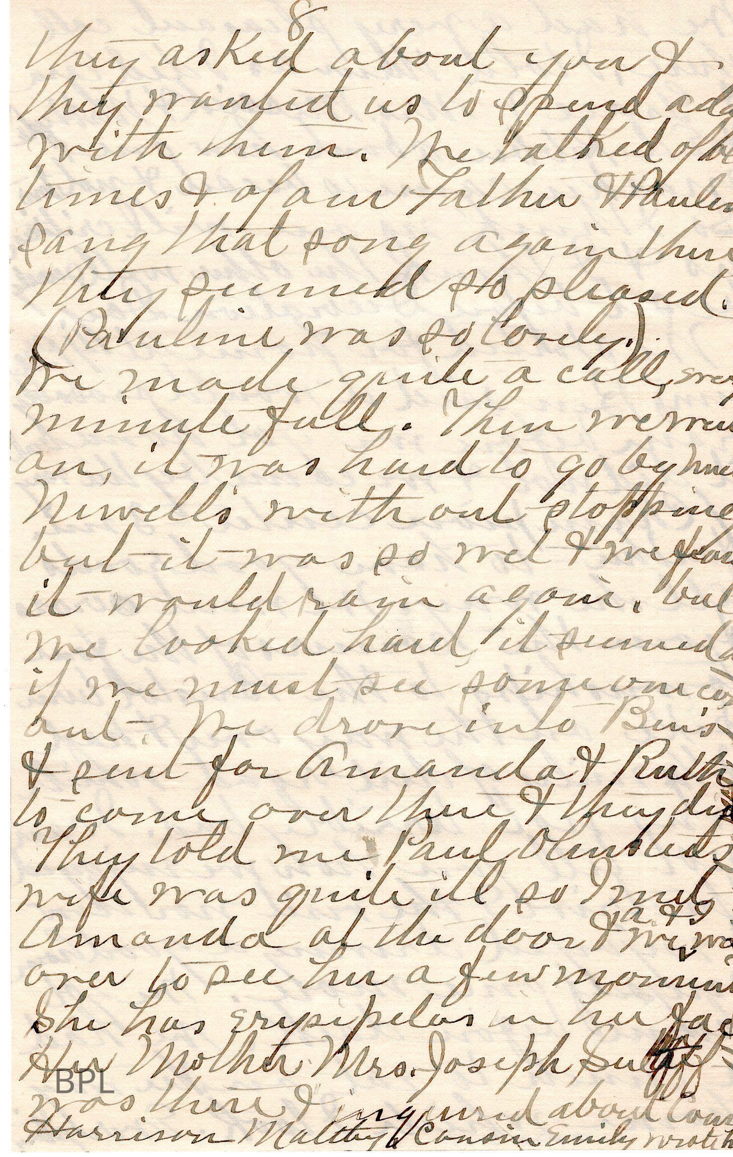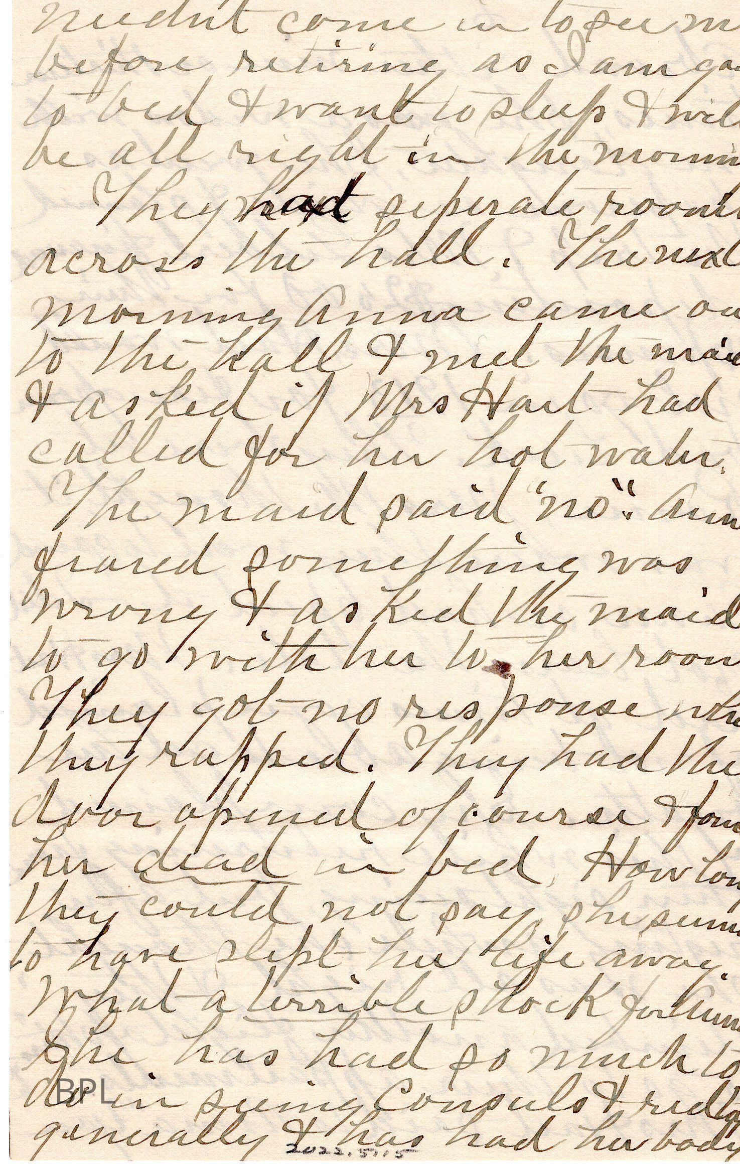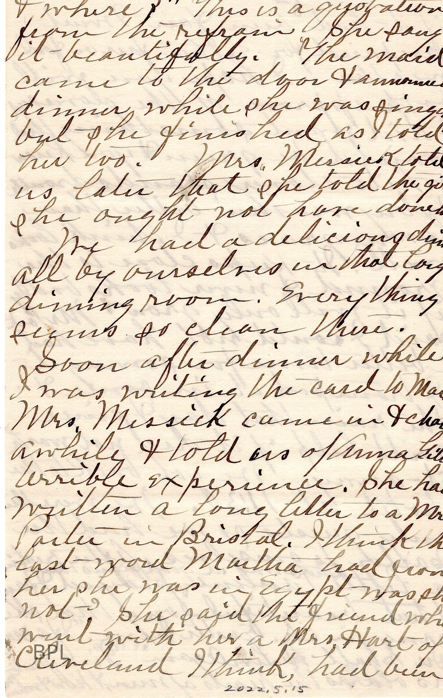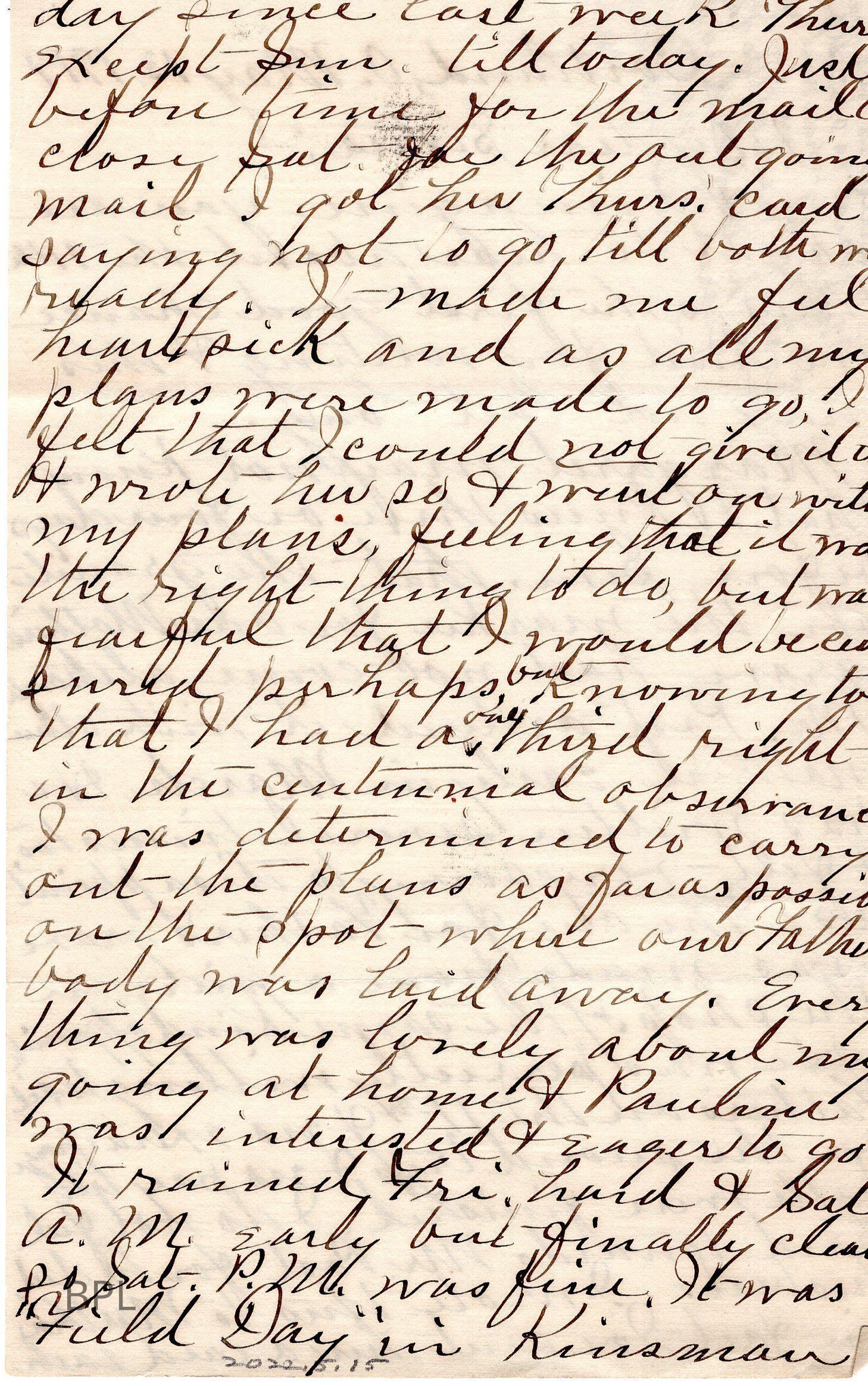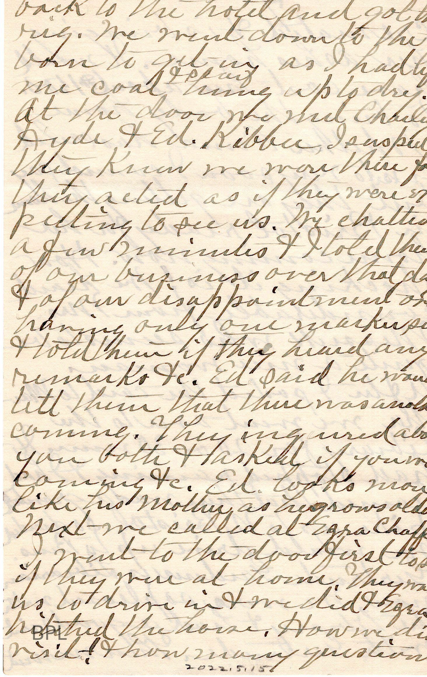 Letter from Betsy Patchen Mayhew to her sister, Martha Maltby, May 13, 1914, regarding Headstone at Evergreen Cemetery for their Mother. Ten Pages, (both sides)Cataloged By