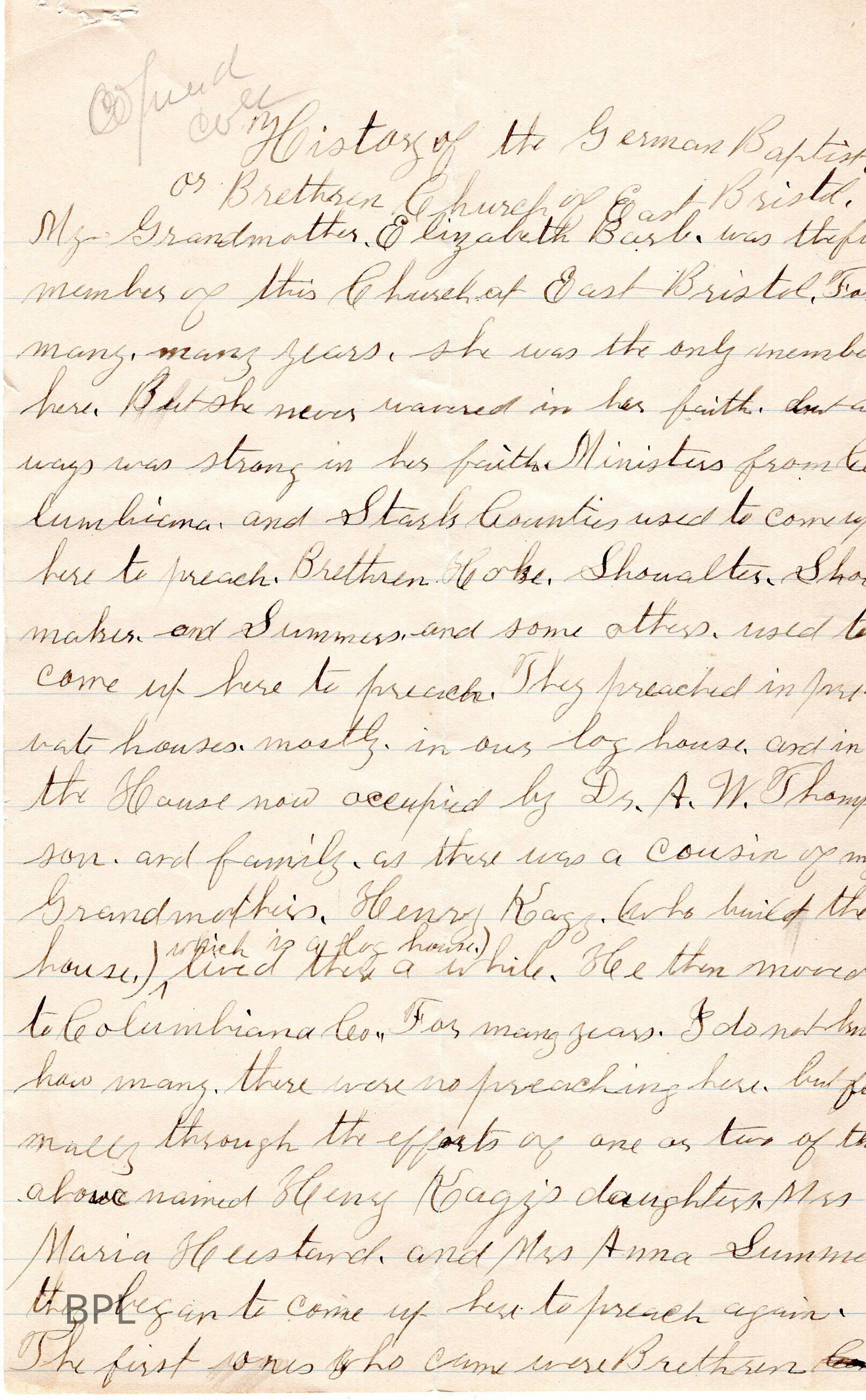 History of the German Baptist or Brethren Church of East Bristol.Cataloged By