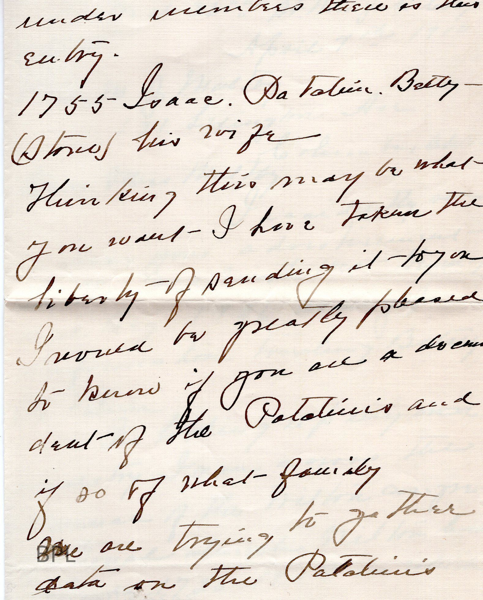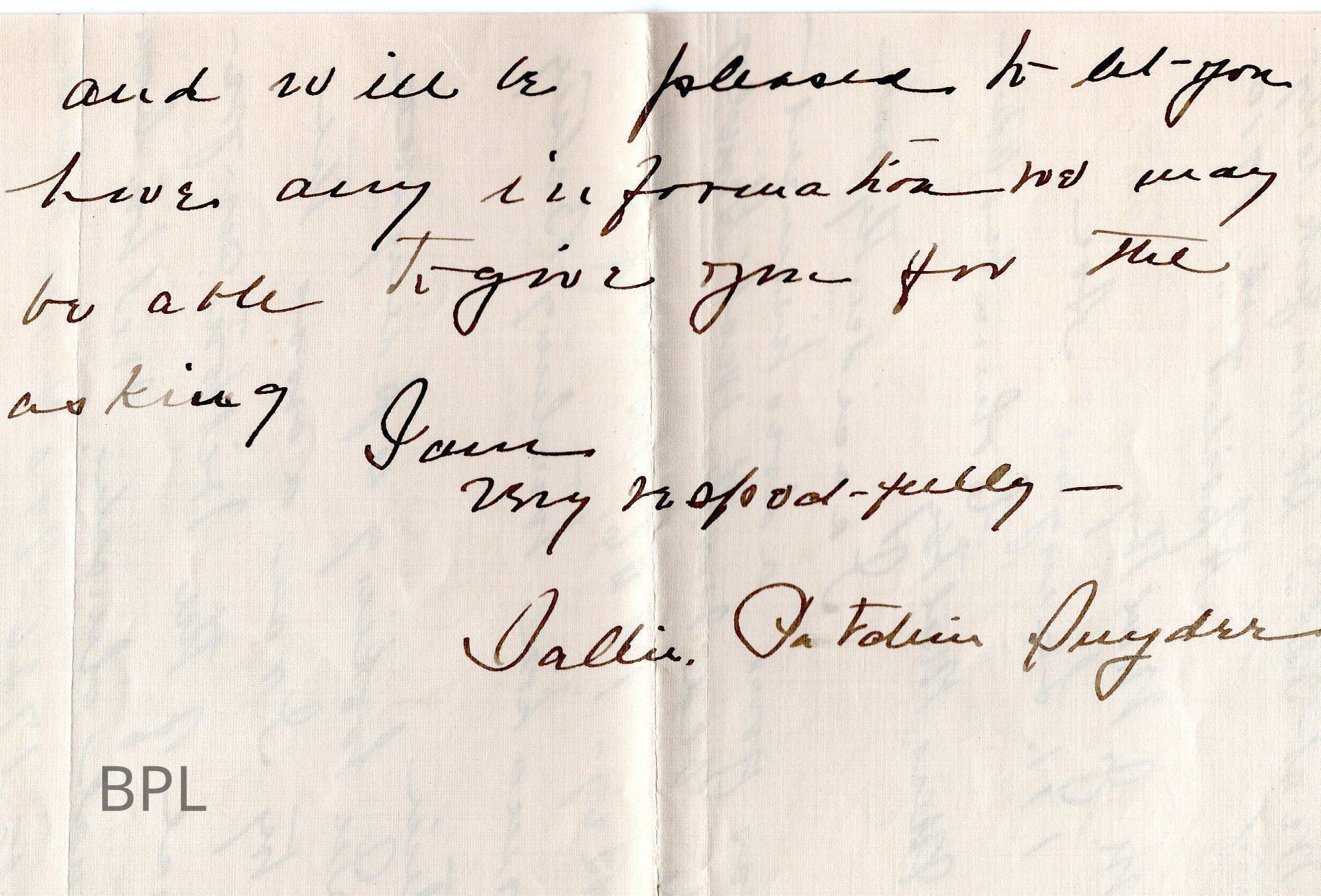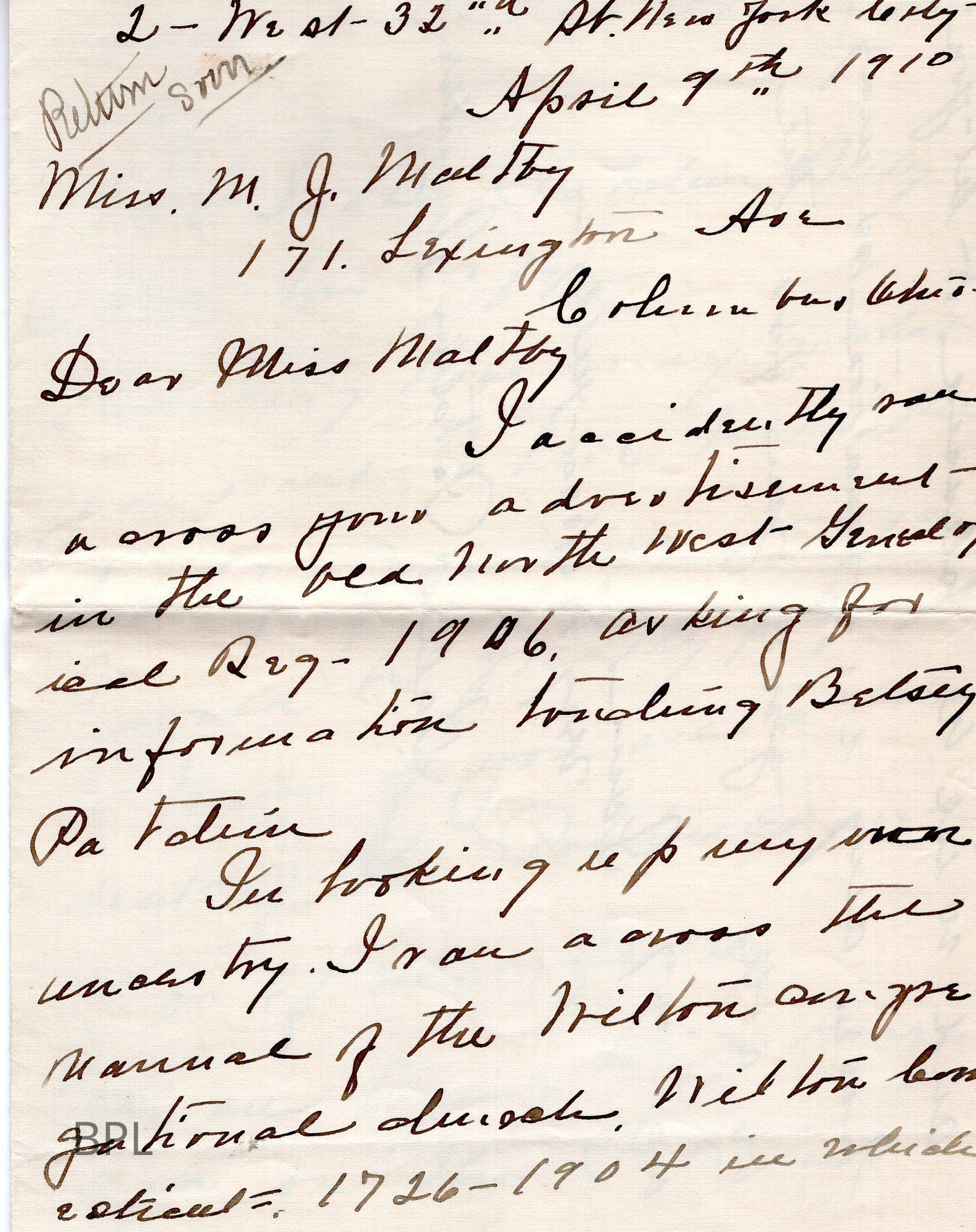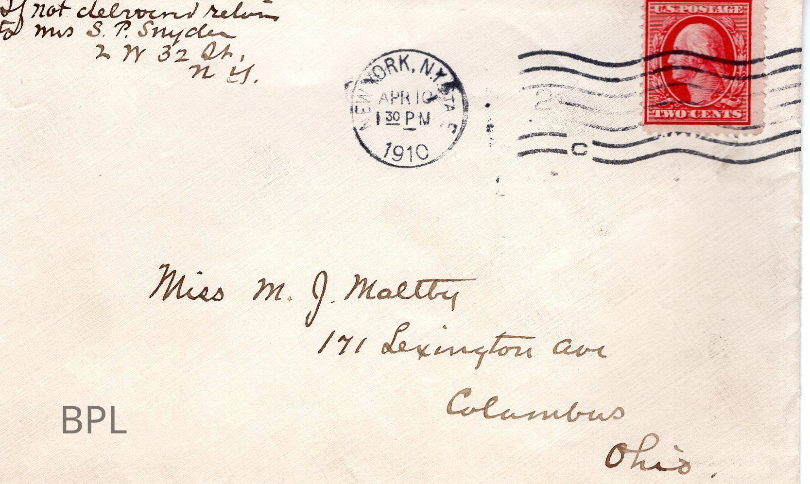 Envelope and Letter, April 7, 1910, to Martha J. Maltby from Sallie Patchin Snyder with Information of Betsy PatchinCataloged By