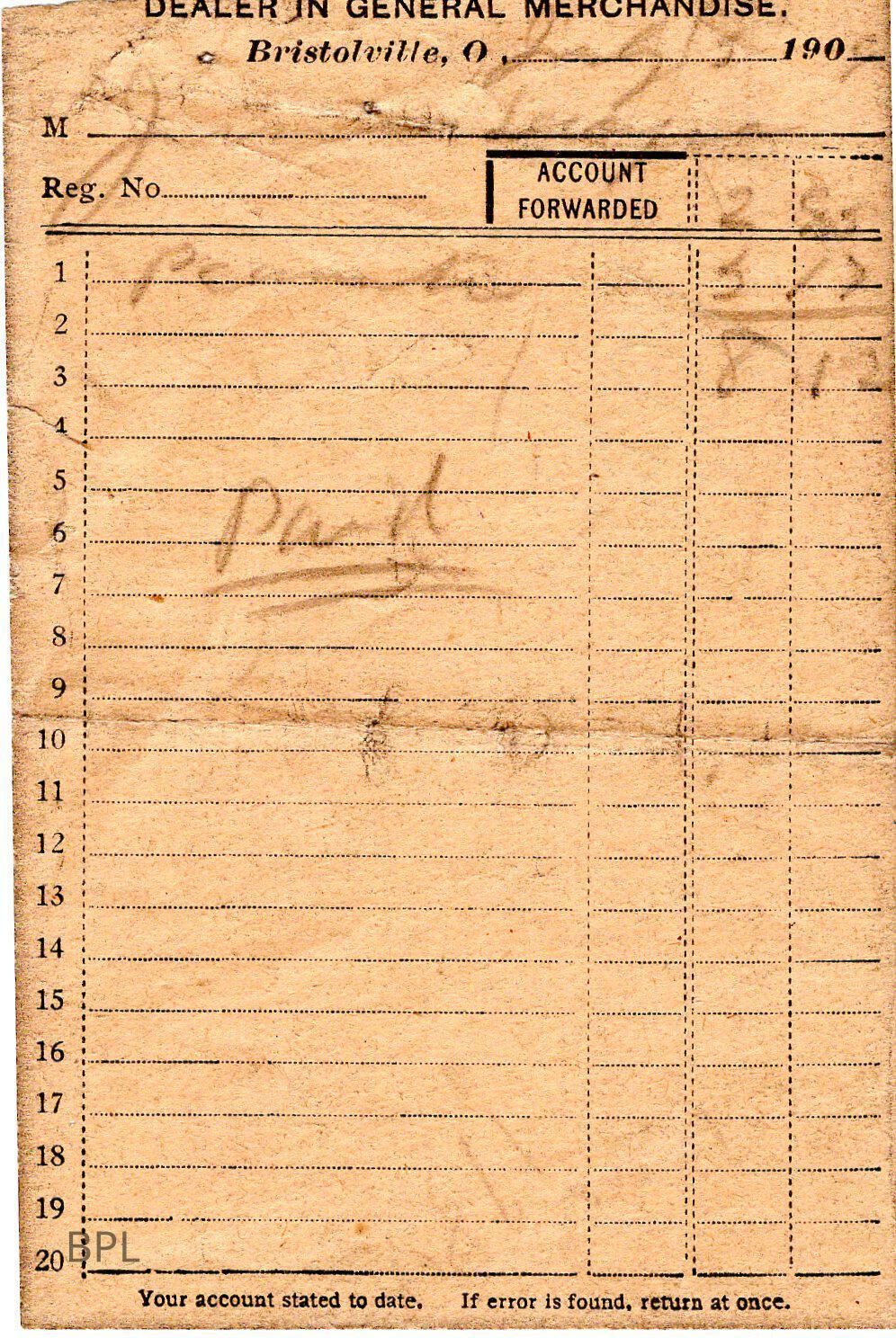 Receipt of 1909 of R.H. Hollister General MerchandiseCataloged By