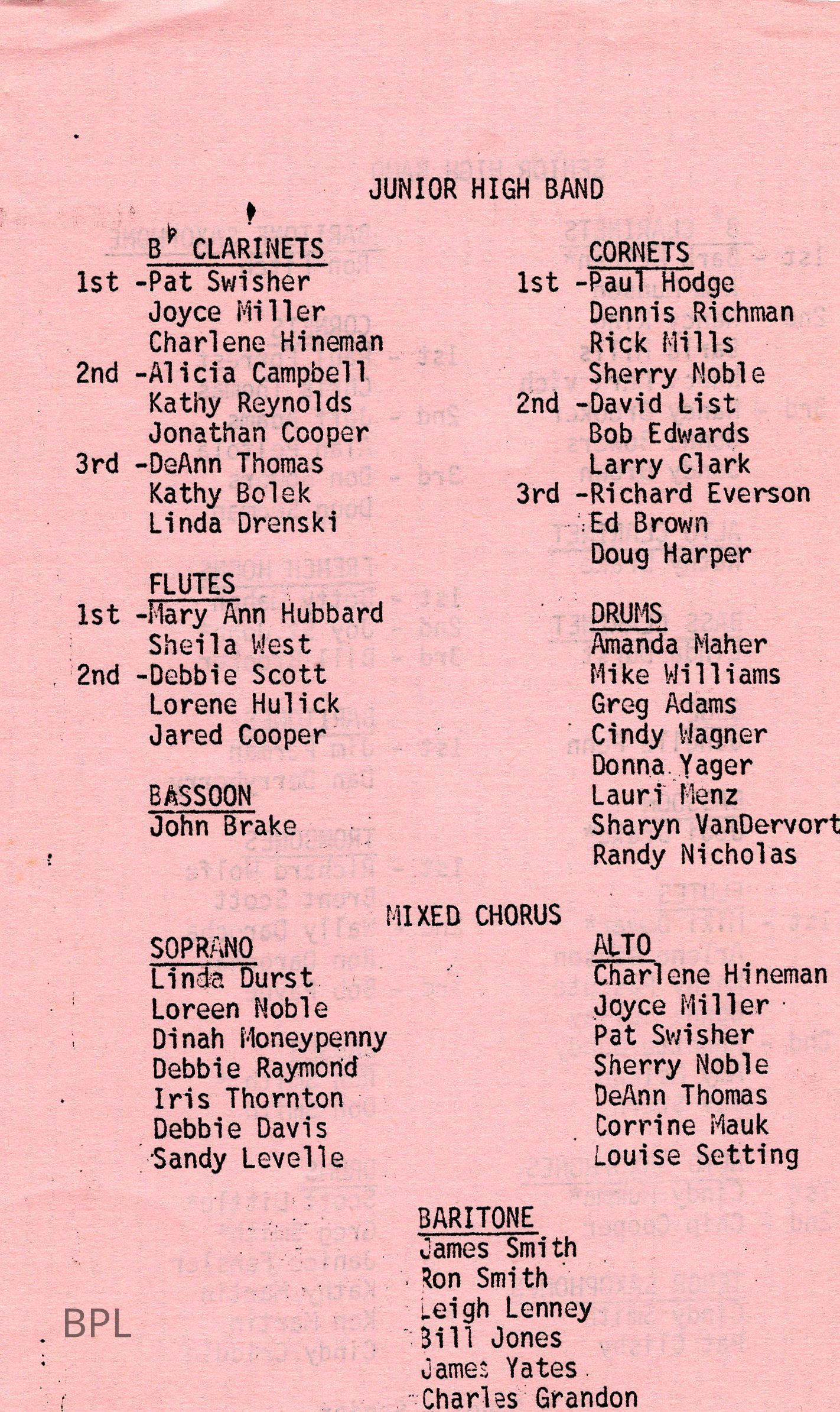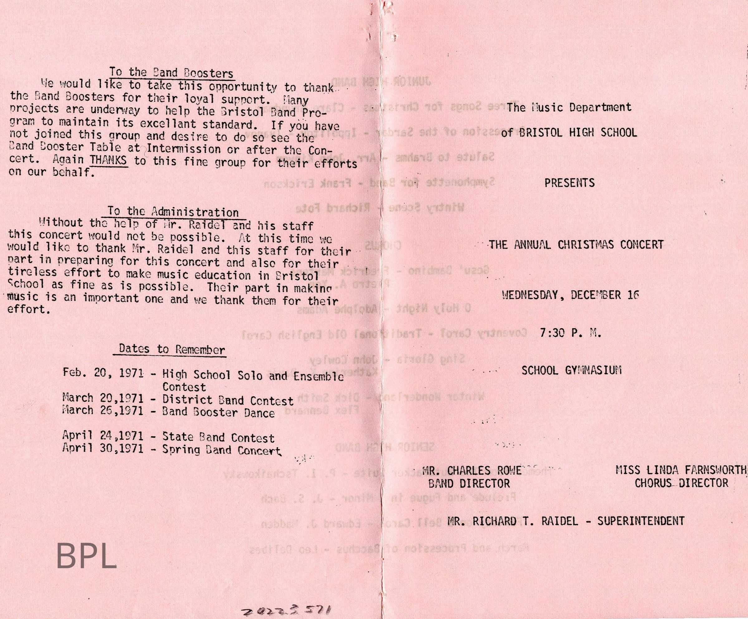Bristol Band, Bristol Chorus, Bristol School, Raidel, Richard.T, Rowe, Charles, Farnsworth,LindaGeneral Notes