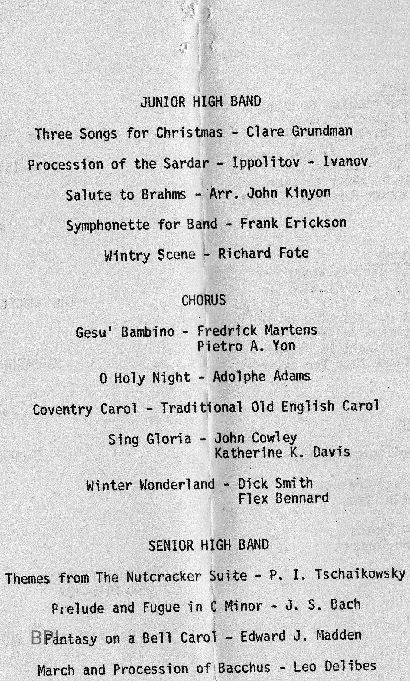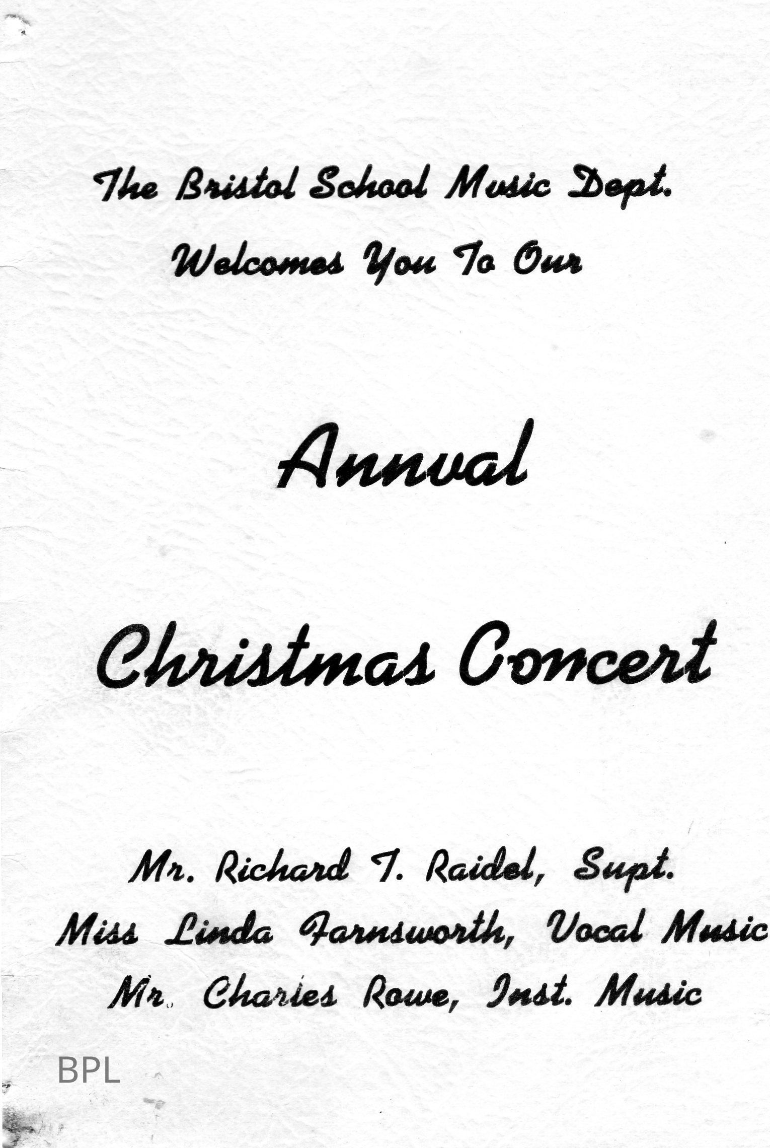 Program Bristol High School Music Department, Christmas Concert, December 16.Cataloged By