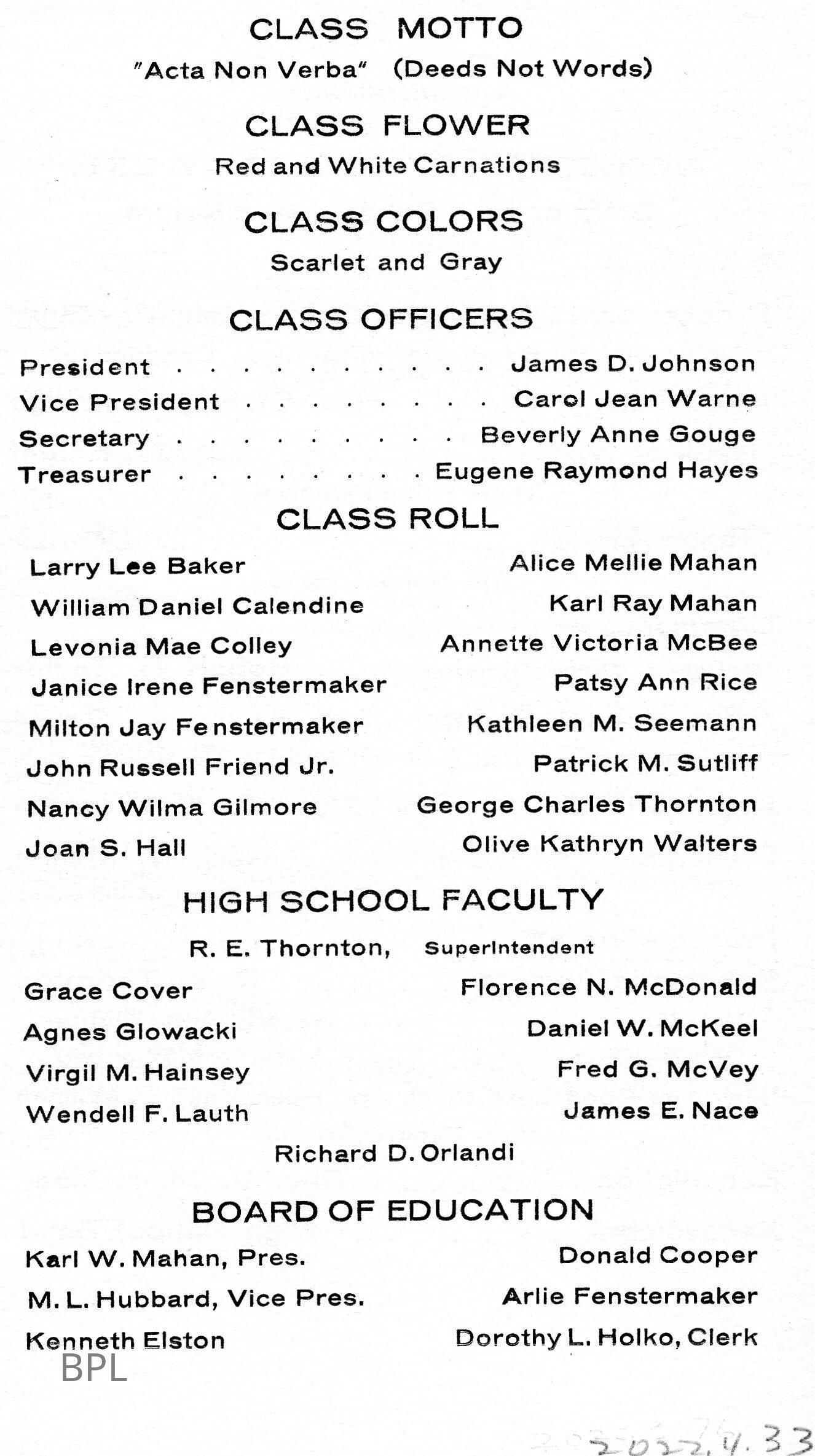 Bristol School, Thornton, R. E., Bristol School Board, Coldern, Walter E. Rev, Geyer, David Rev., Hainsey, V.M. Rev, Partridge, Stanley, Rev., McKeel, Daniel, Cover, Grace, Glowacki, Agnes, McDonald, Florence, N., Lauth, Wendell, McVey, Fred G., Nace, James E., Mahan, Karl, Hubbard,Marshall.DVM, Cooper, Donald, Fenstermaker, Arlie, Holko, Dorothy L., Elston, Kenneth, Johnson, James, Warne, Carol, Gouge, Beverly, Hayes, Gene, Mahan, Alice Mellie, McBee, Anenete Victoria, Rice, Patsy Ann, Seemann, Kathleen M., Sutliff, Patrick M., Thornton, George Charles, Walters, Olive Kathryn