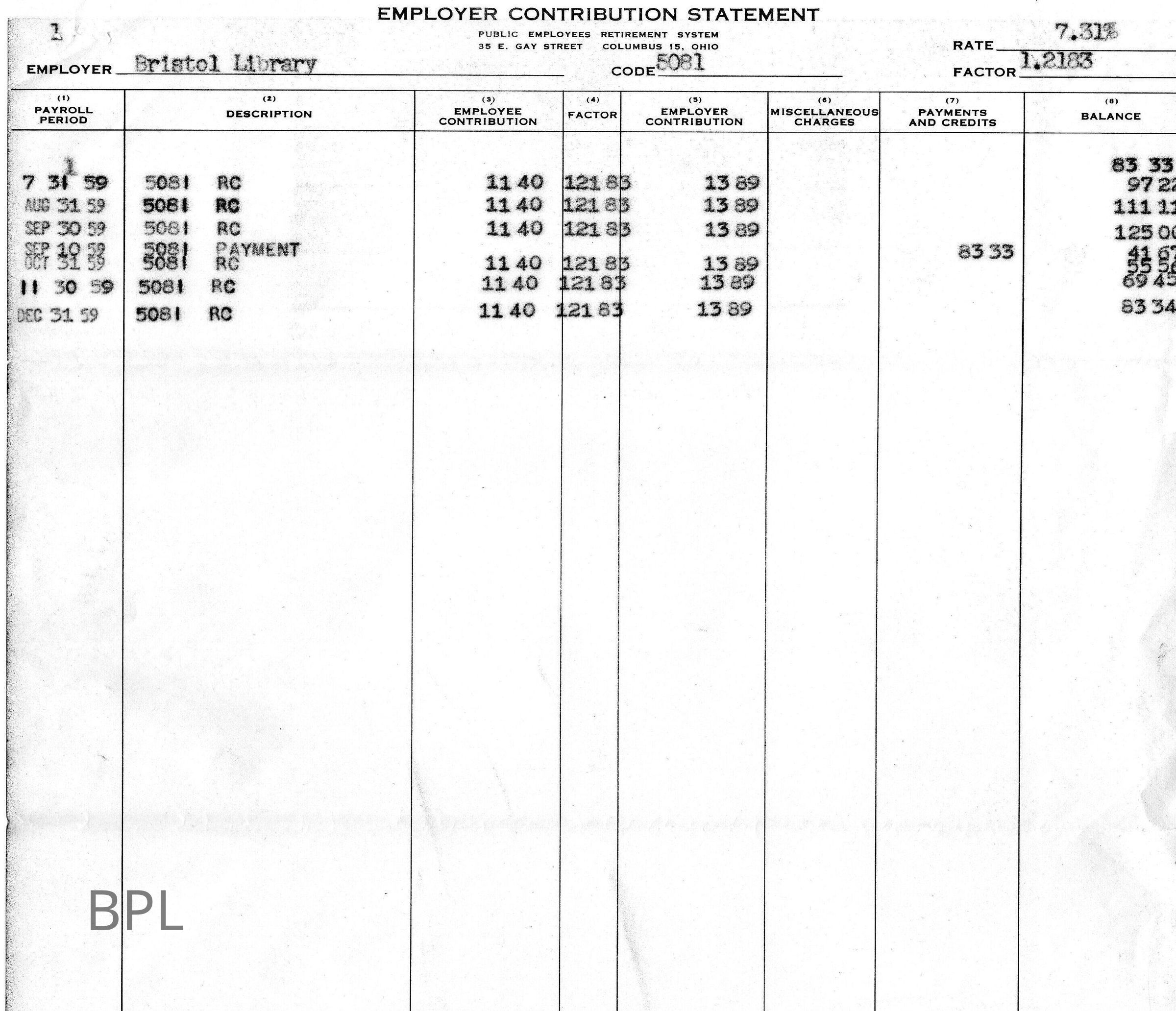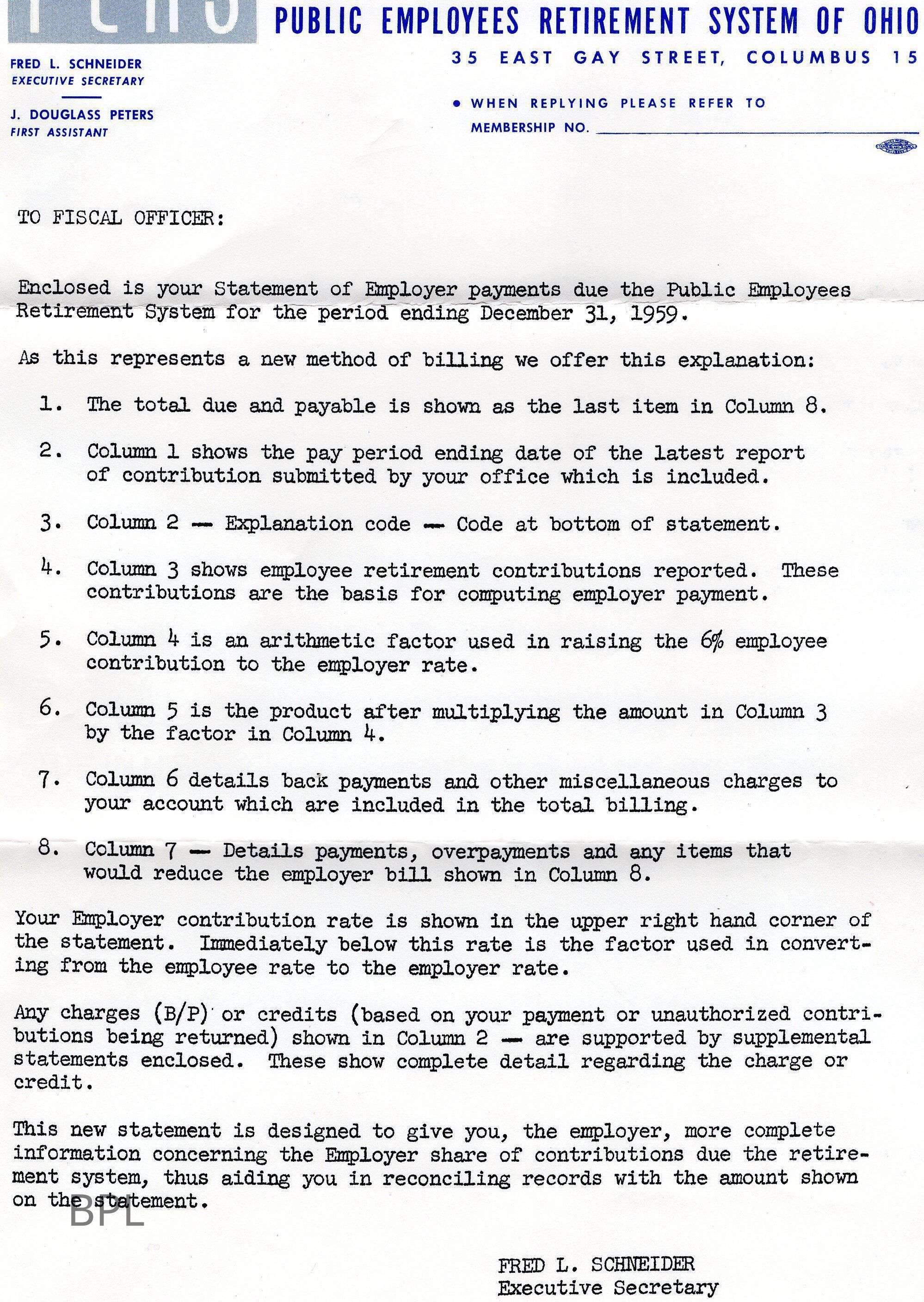 Letter of information from Public Employees Retirement System of Ohio , December 31, 1959Cataloged By