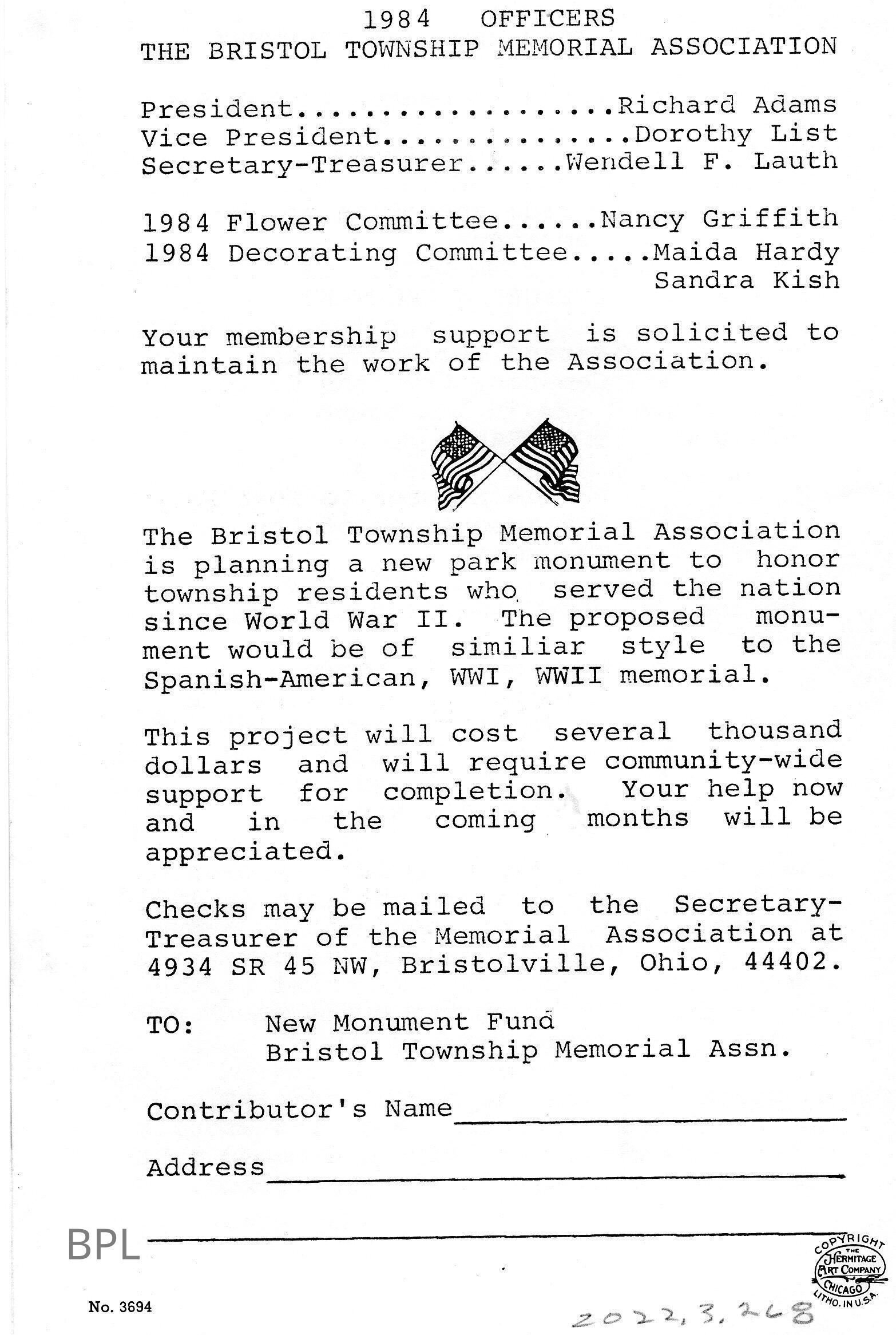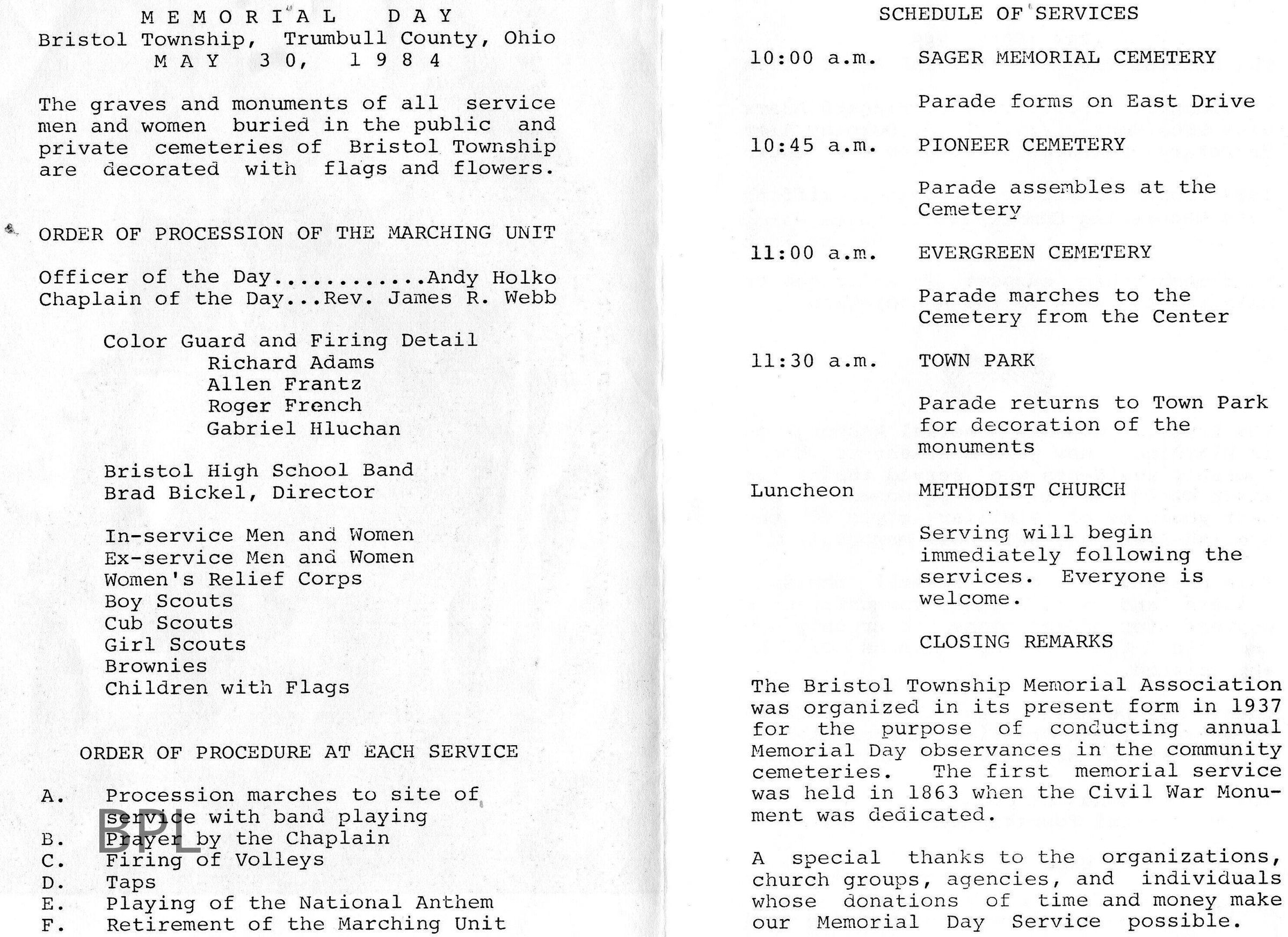 Memorial Day Program, Bristolville, Ohio, May 1984