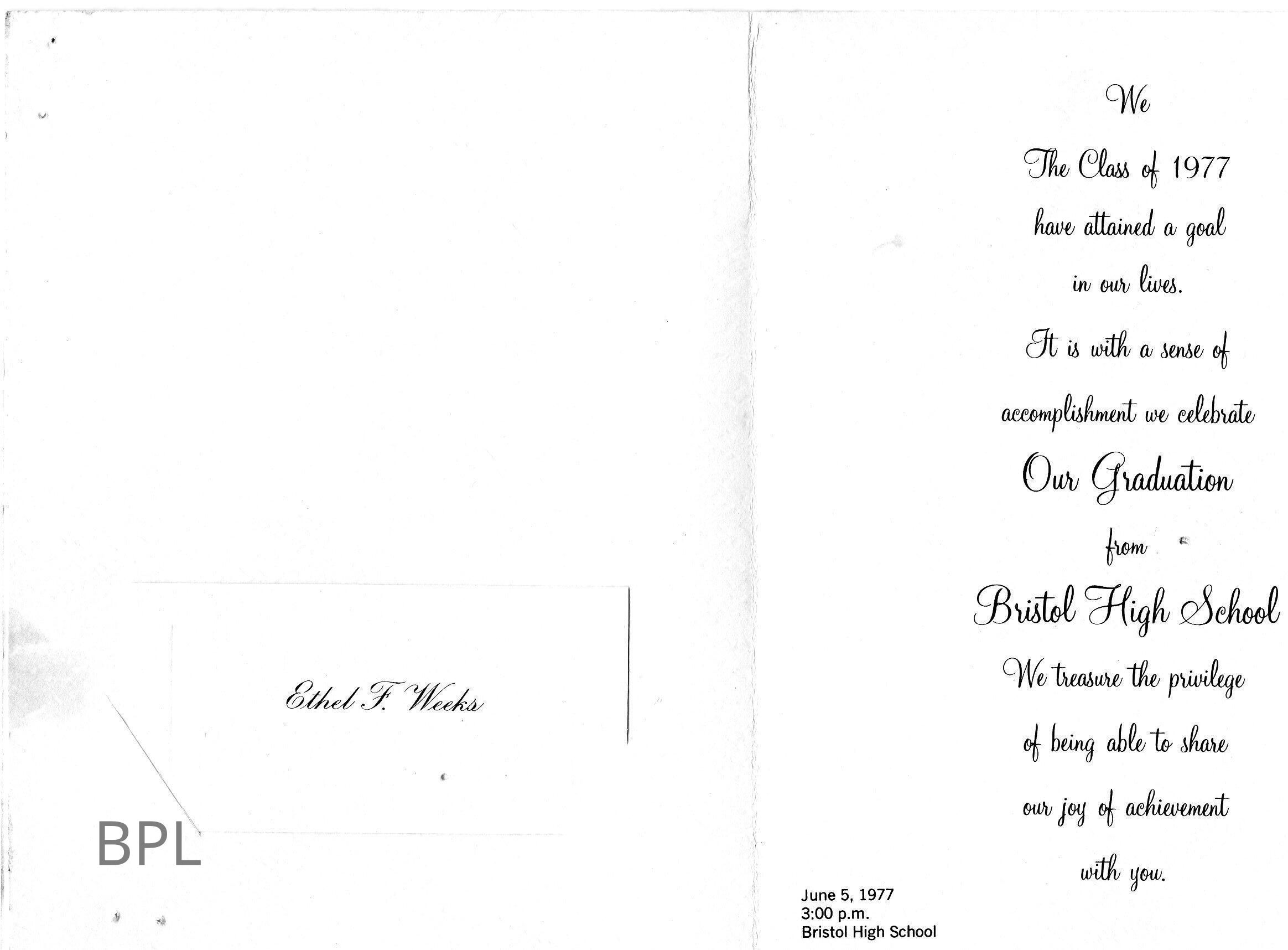1977 Bristol High School Graduation Announcement ofEthel F. WeeksCataloged By