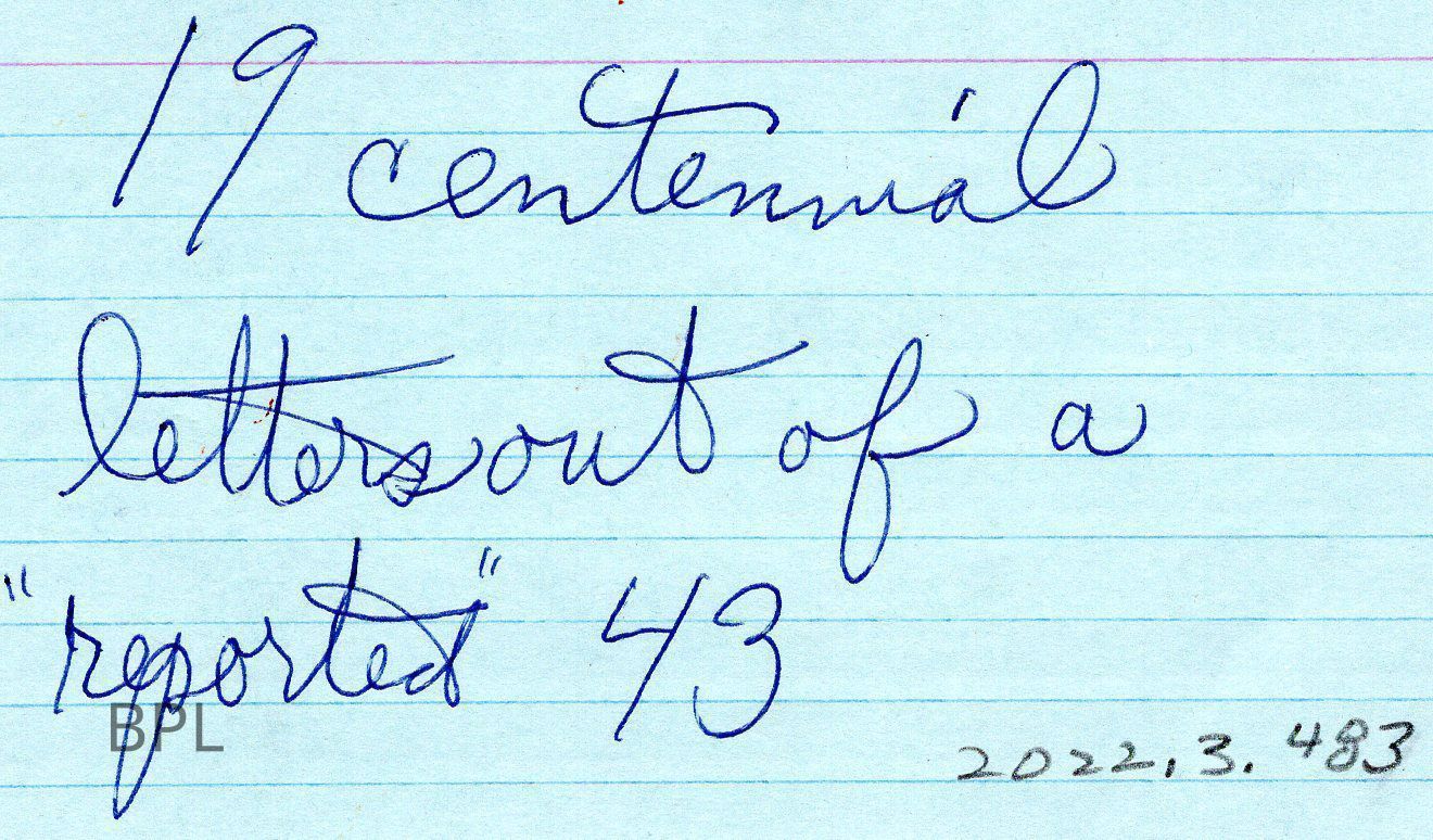 Note of 43 letters received regarding centennial of 1905Cataloged By
