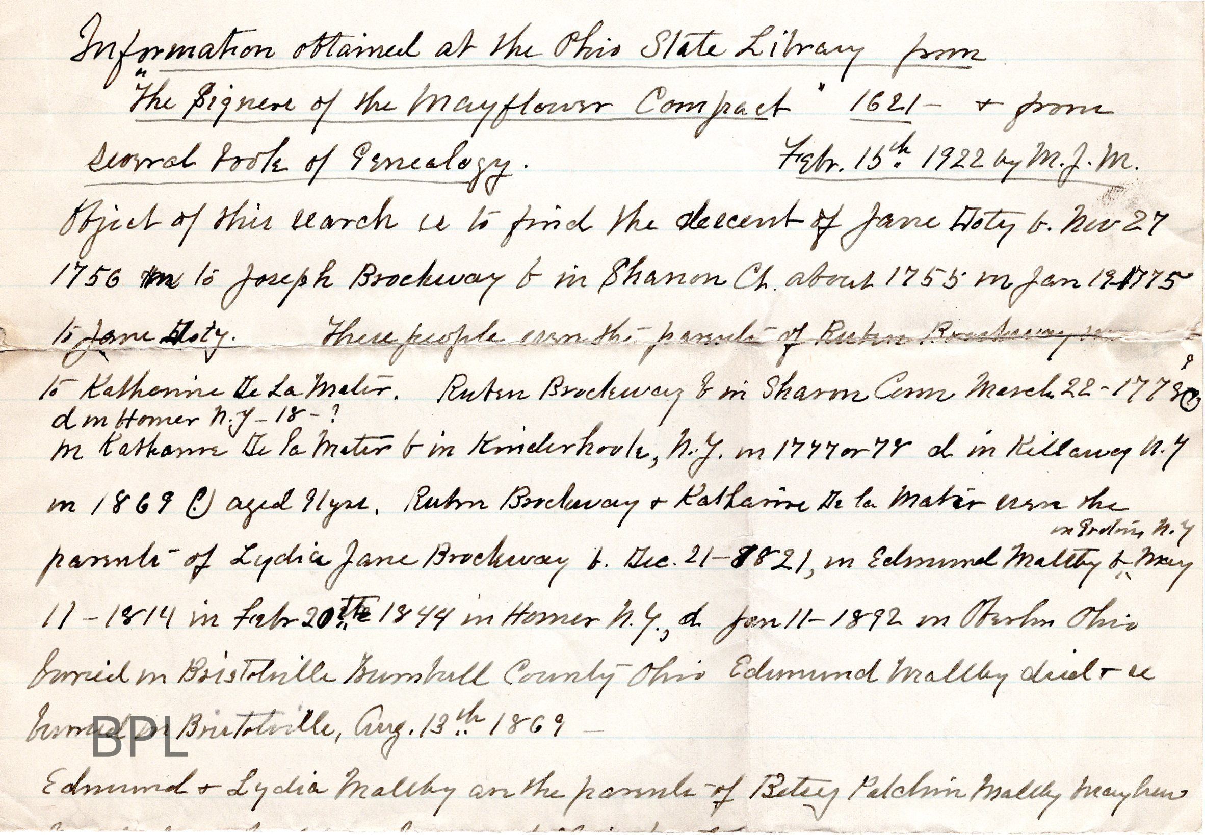 Maltby Family History taken from Ohio State Library, Signers of Mayflower Compact 1621