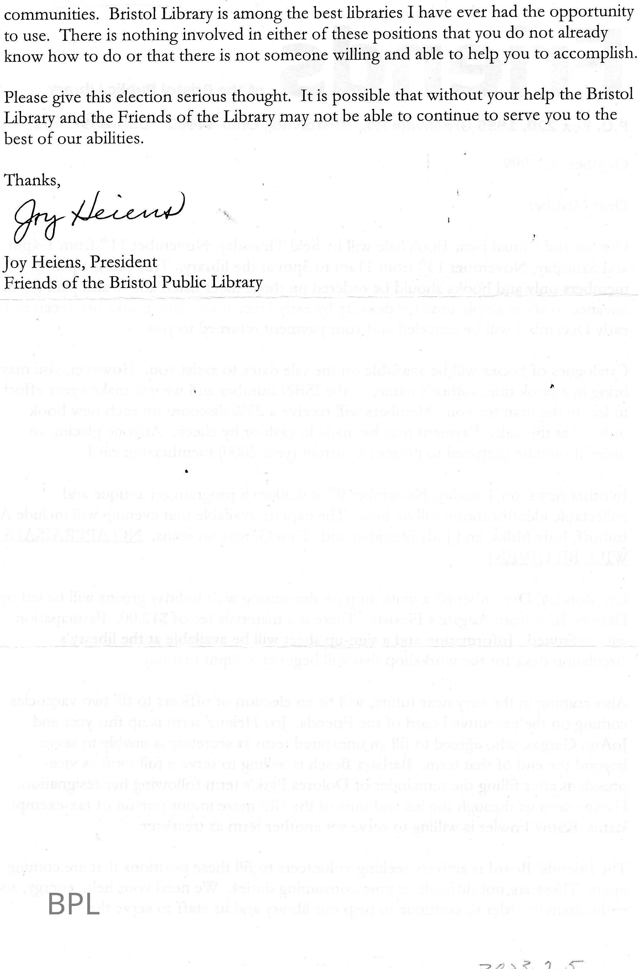 Bristol Public Library, Friends of Bristol Public Library, Heiens, Joy