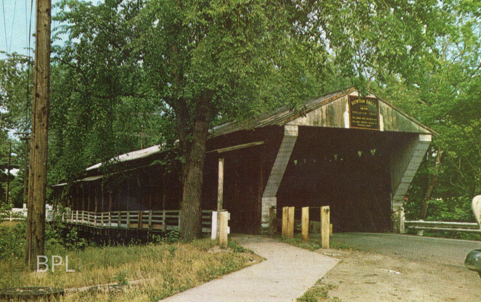 Postcard photo of covered bridge in Newton Falls, Ohio, Trumbull county, OhioCataloged By