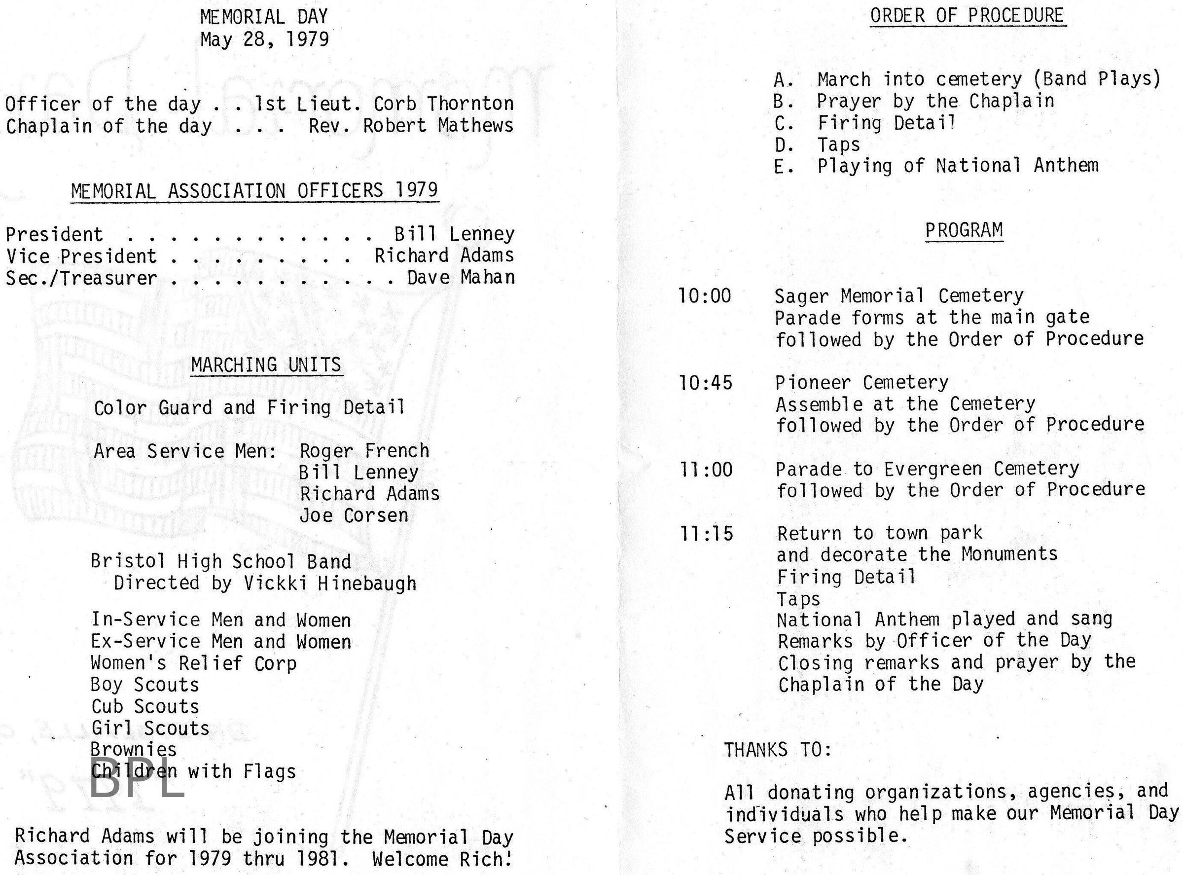 Memorial Day Program, Bristolville, Ohio, May 1979Cataloged By
