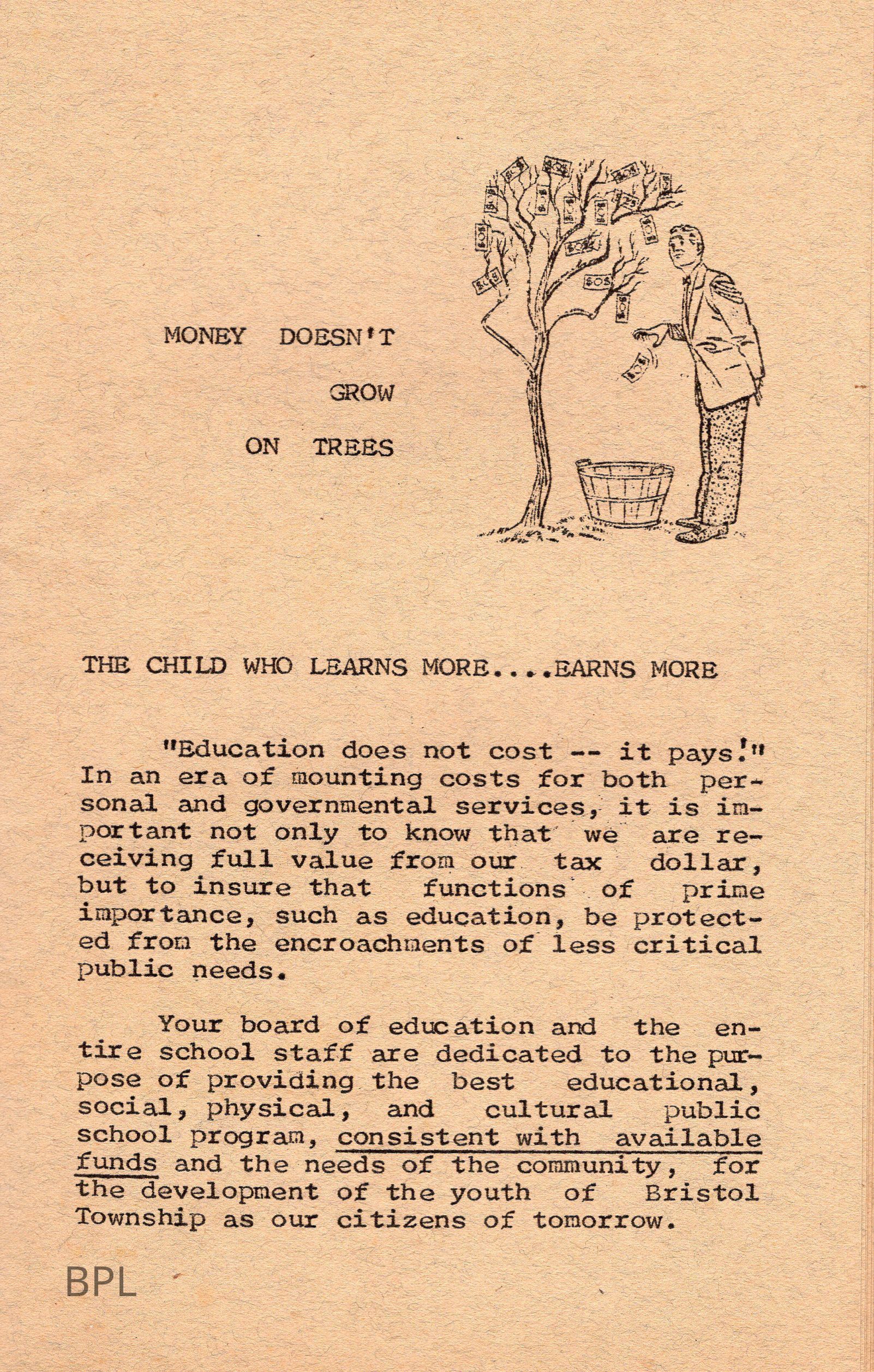 Pamphlet of Bristol Board of Education of costs and benefits of Education.Cataloged By
