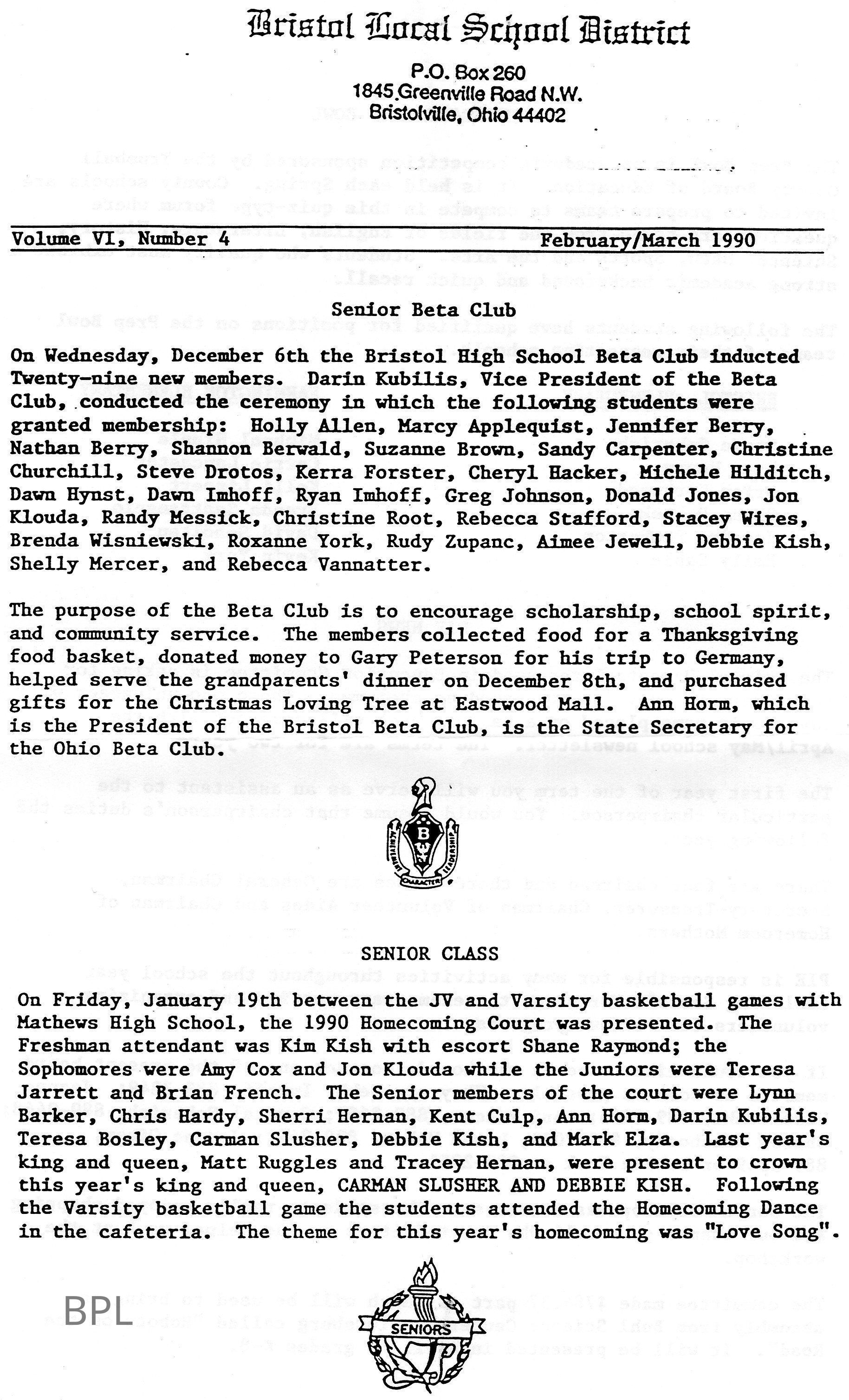 Bristol School Report, February/March 1990Cataloged By