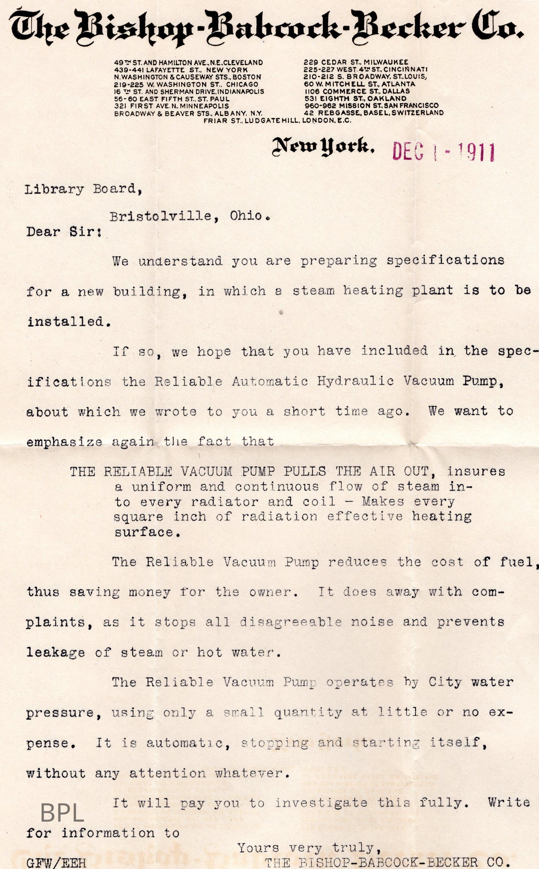 Bristol Trustees Library Association, Bishop-Babcock-Becker Company