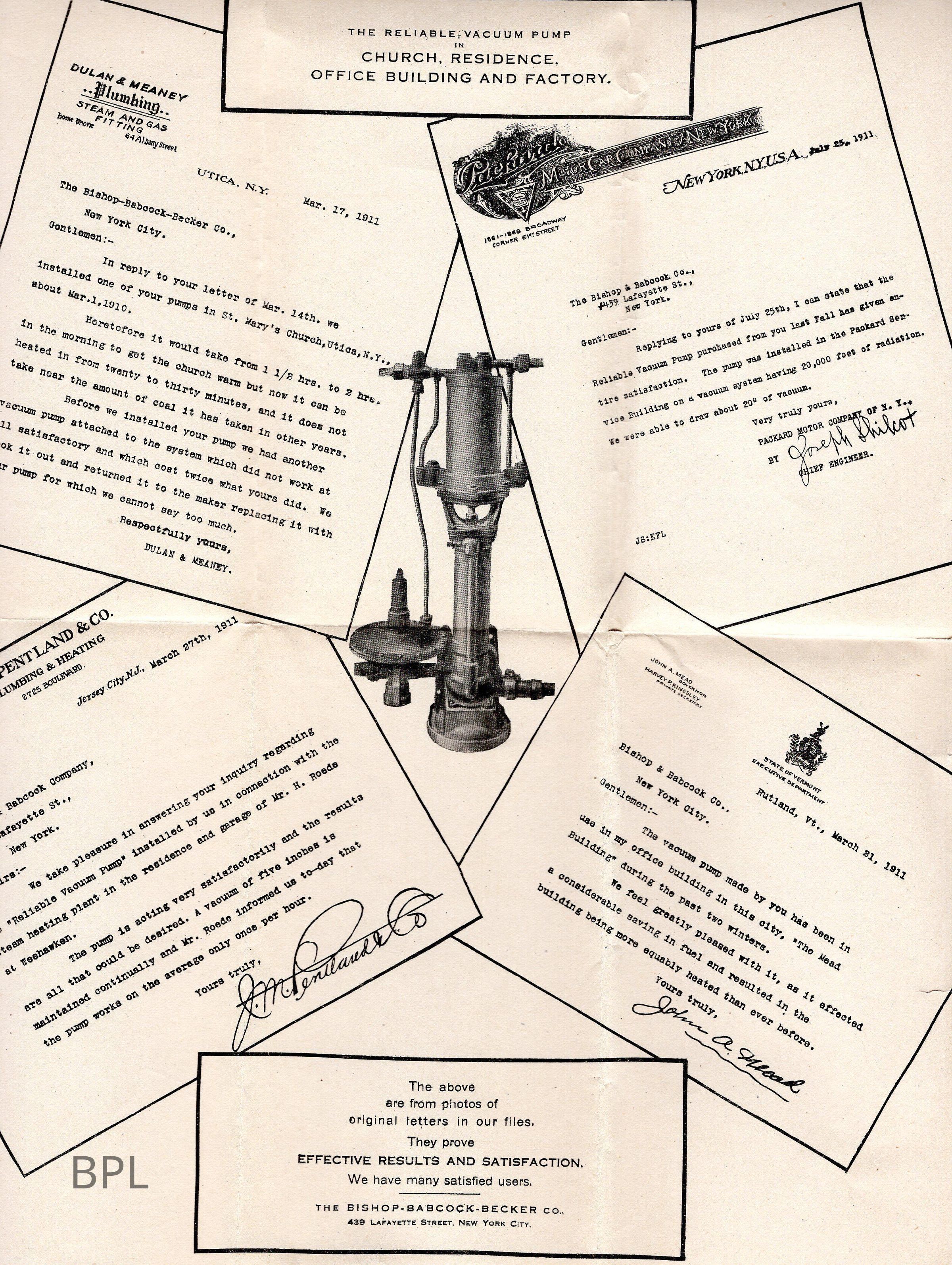 Envelope, letter and recommendation letters dated /December 2, 1911 from Bishop-Babcock_ Becker Company of New York, New York for sales of steam heating.Cataloged By