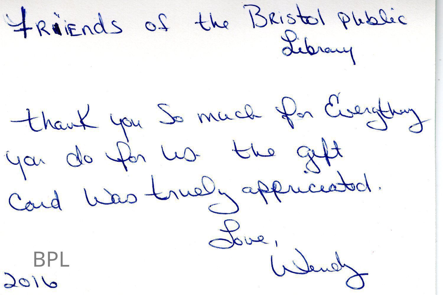Thank You Card to Friends of Bristol Public LibraryCataloged By