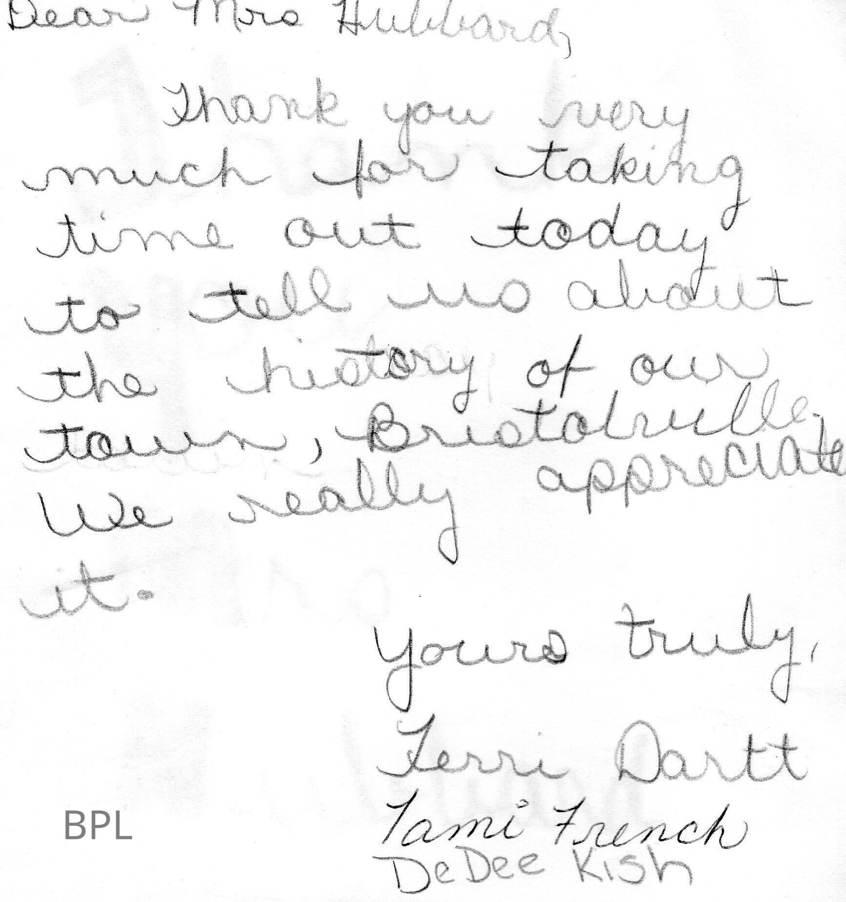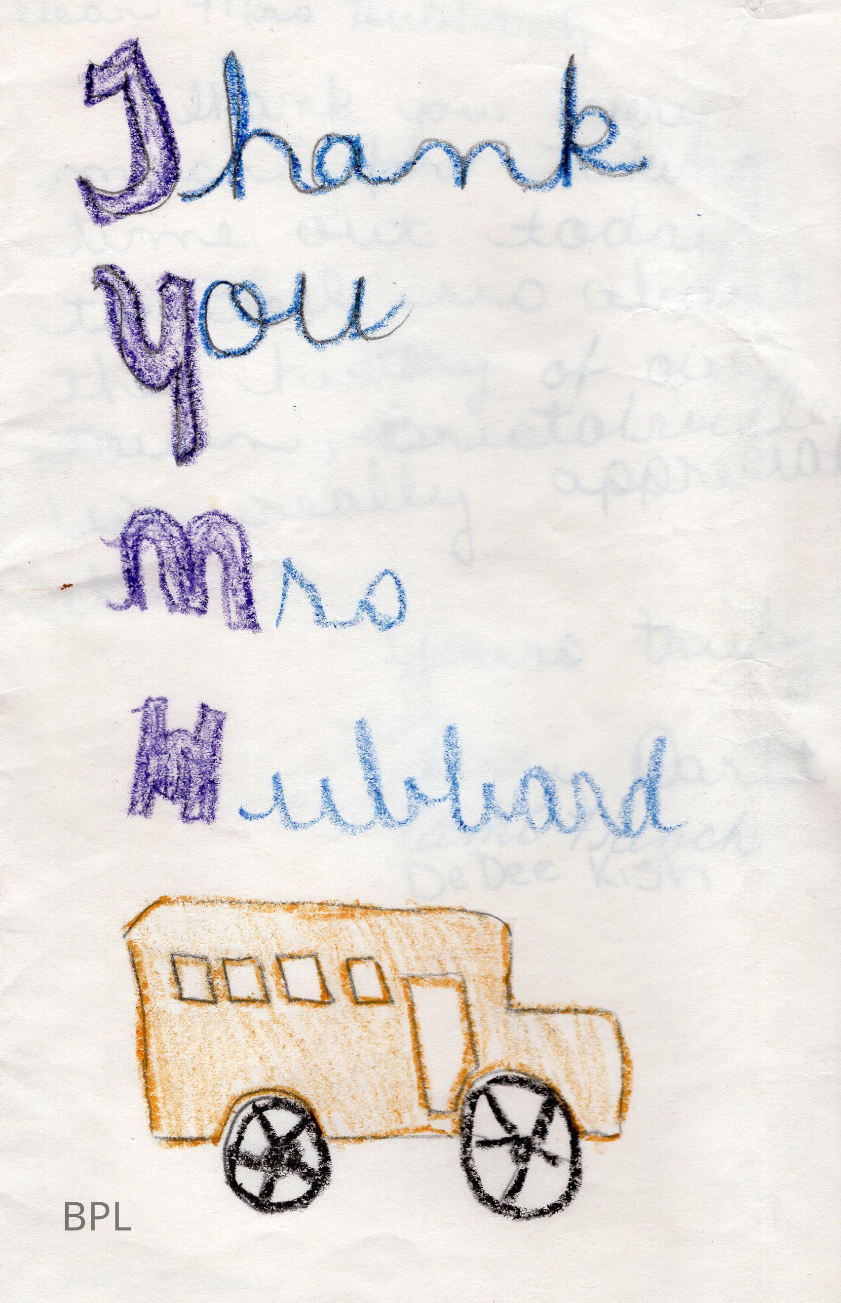 Thank you note to Mrs. Hubbard from school class for tour of Bristolville, Ohi