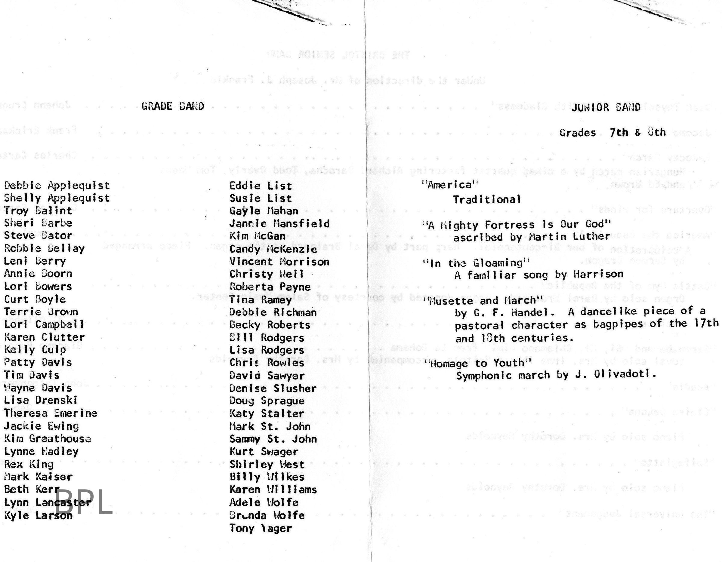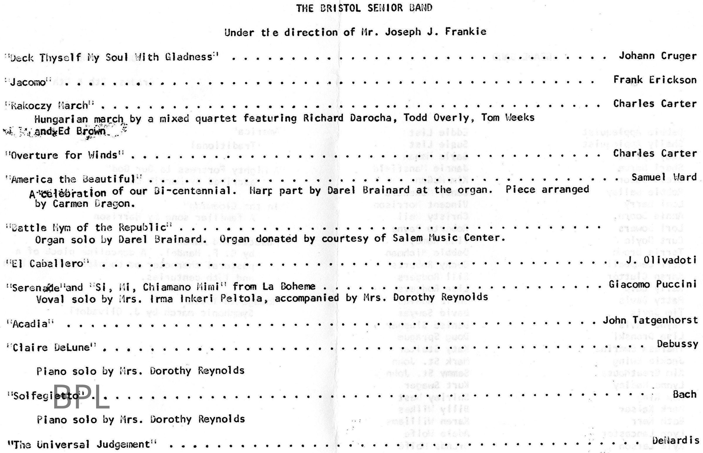 Bristol School Annual Spring Band Concert, May 12 , 1976Cataloged By