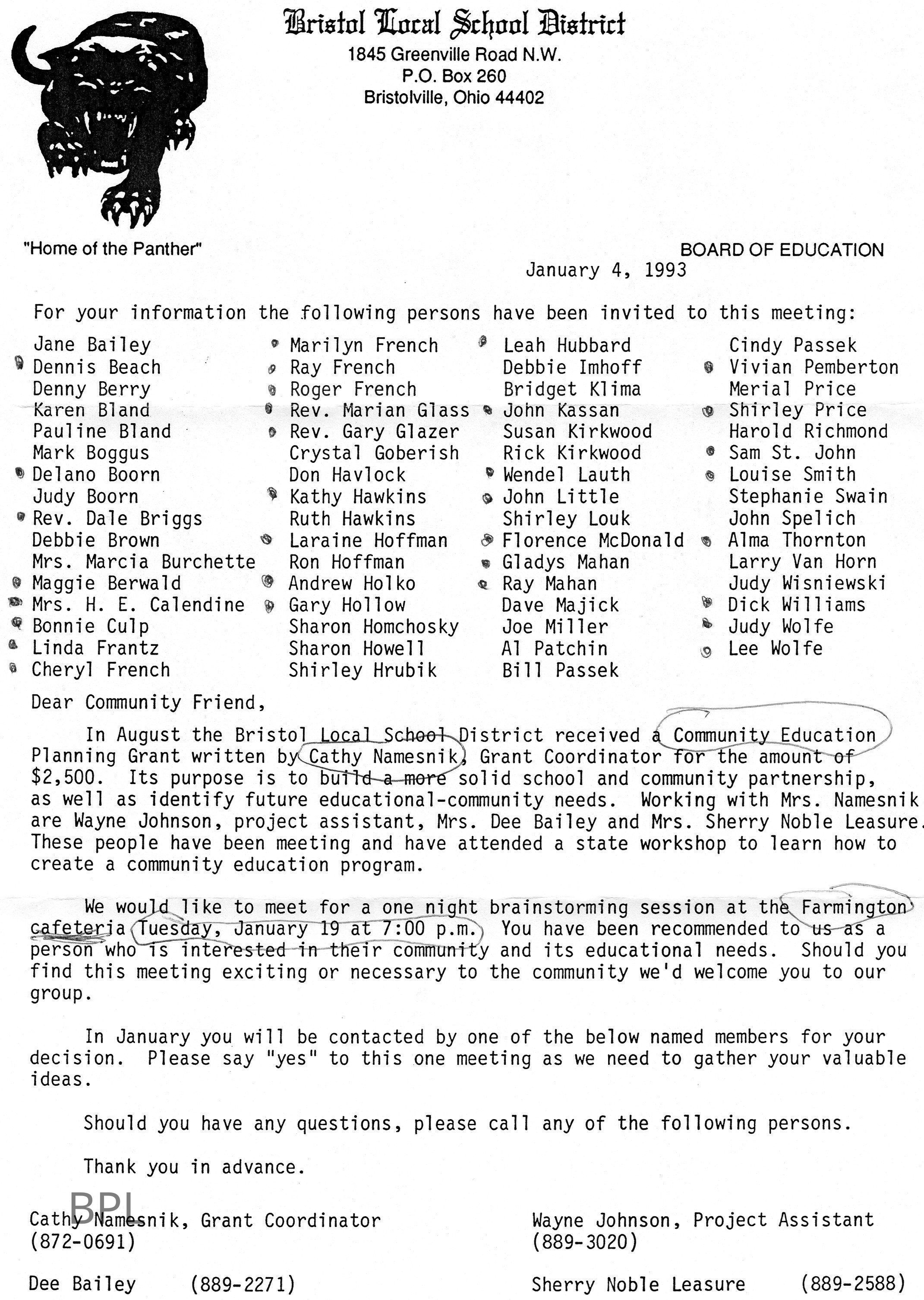 Hubbard, Leah, Bristol School, Bristol Board of Education, Namesnik, Cathy, Bailey, Dee, Johnson, Wayne, Leasure, Sherry