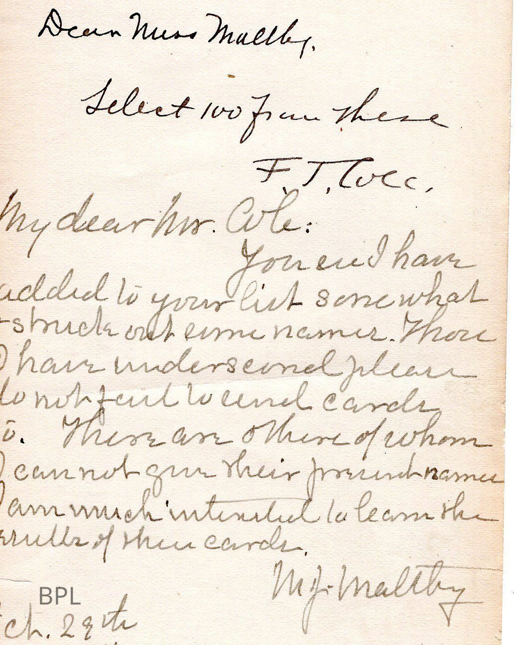 Short Letter to Mrs. Cole from M.J.MaltbyCataloged By