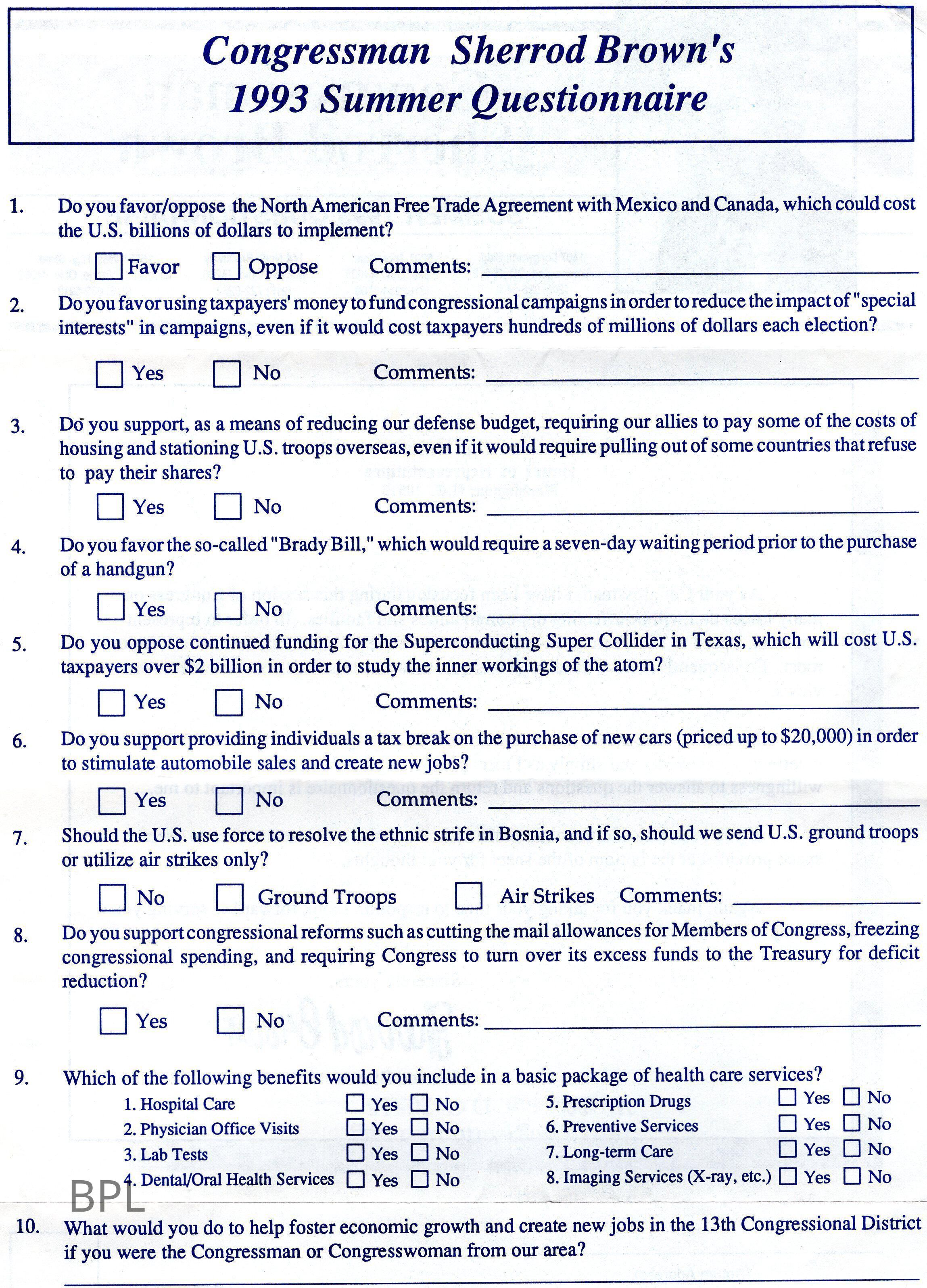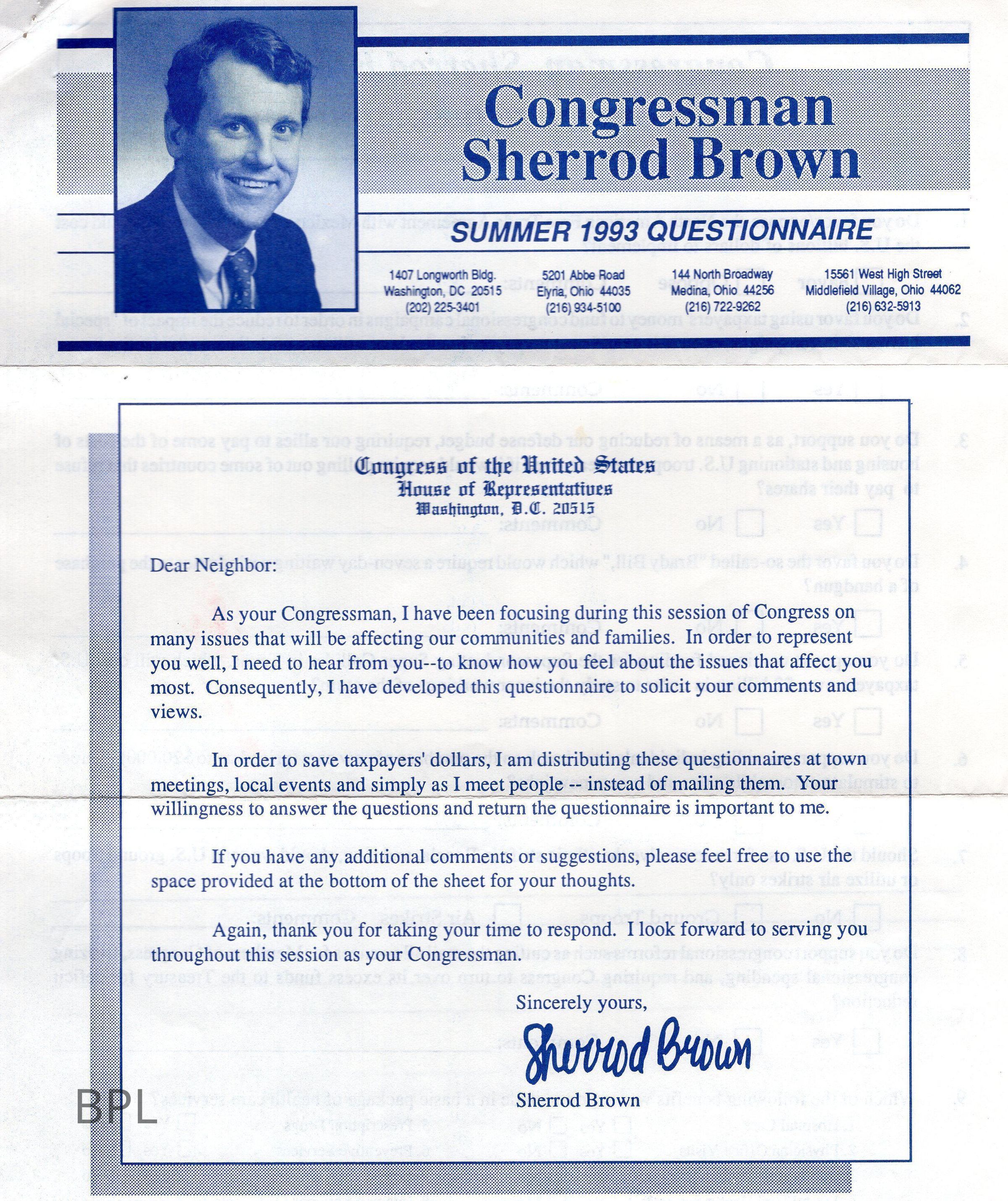 Notice of Town Hall meeting with Sherrod Brown, 1993Entry/Object ID