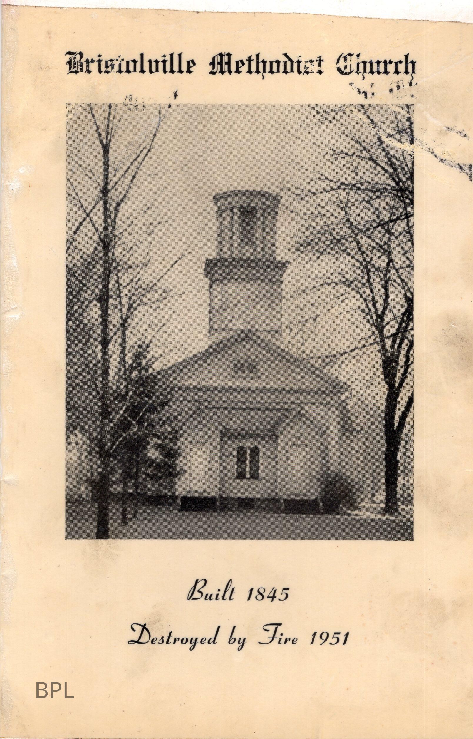 Short history of Bristolville Methodist Church, built 1845, destroyed by fire 1951Cataloged By