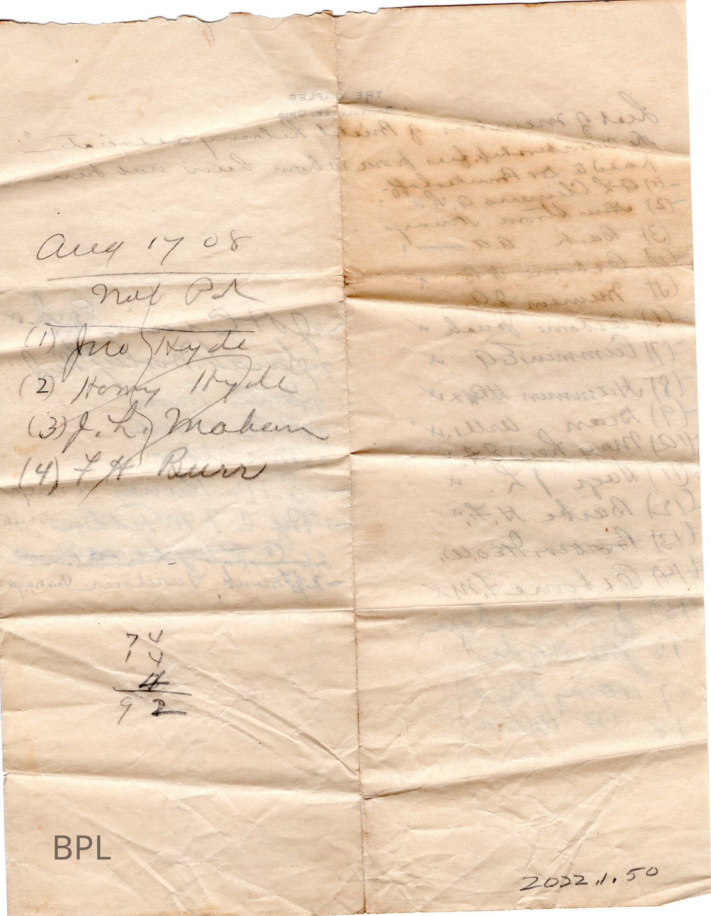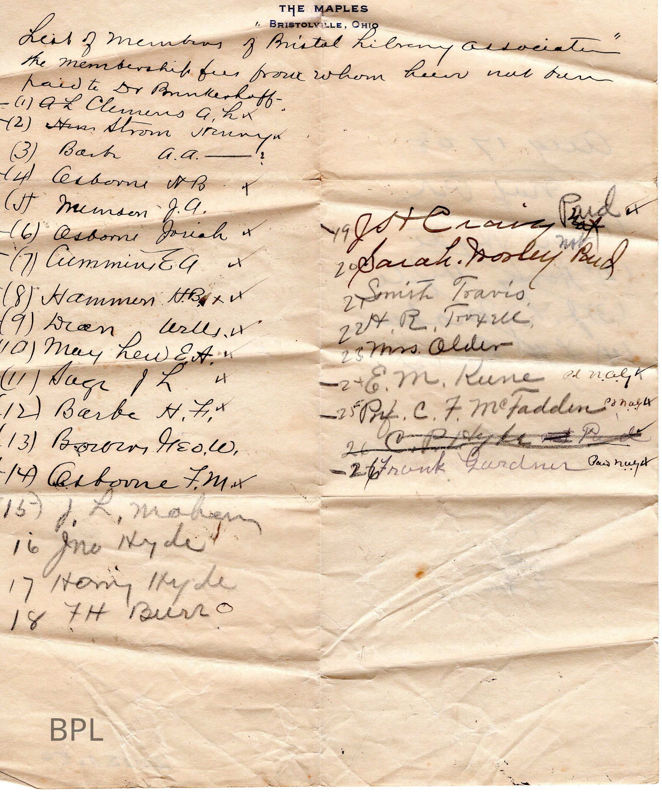 Names of Bristol Library Association who have not paid dues, August 17, 1908Cataloged By