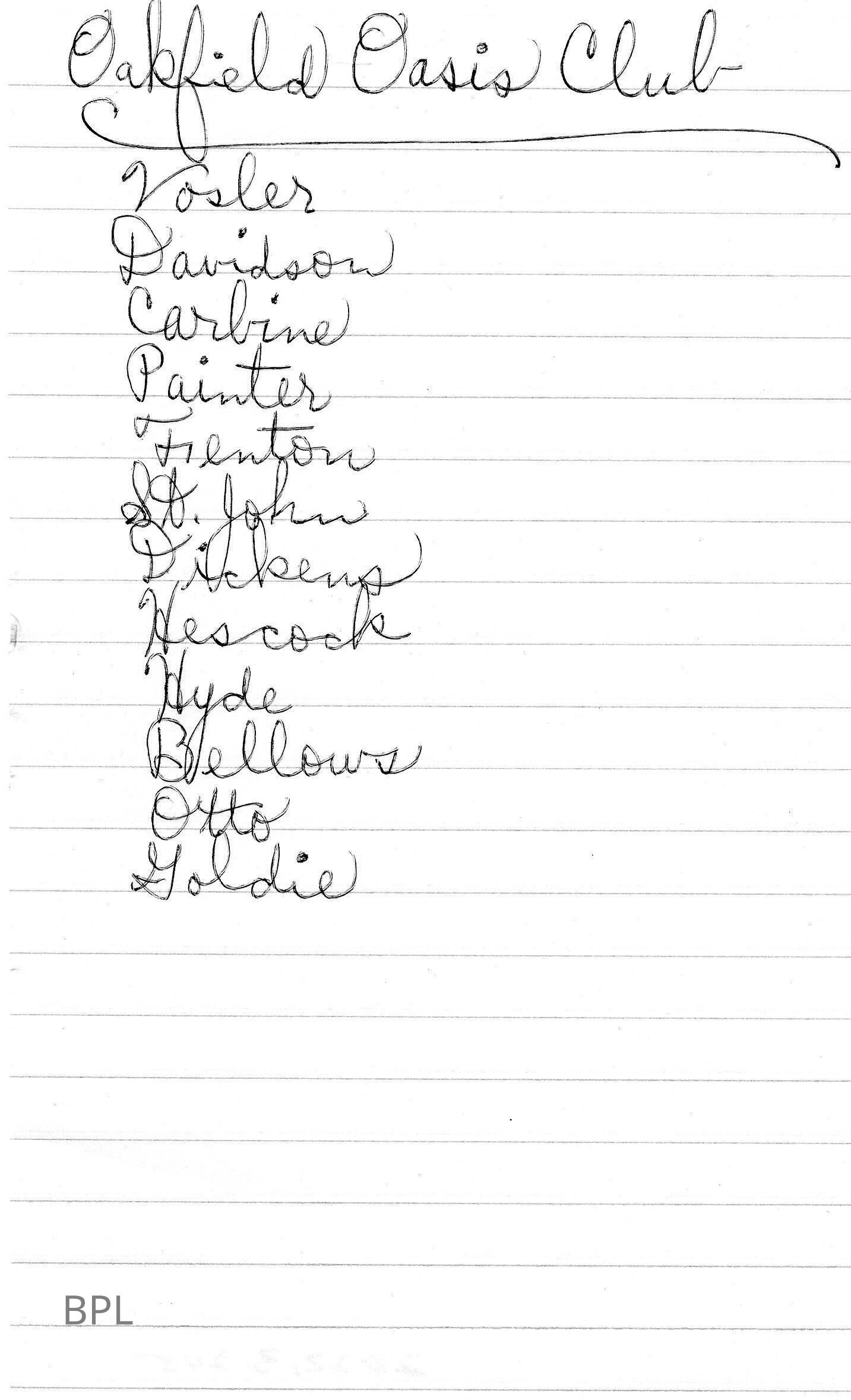 List of names for Oakfield Oasis ClubCataloged By