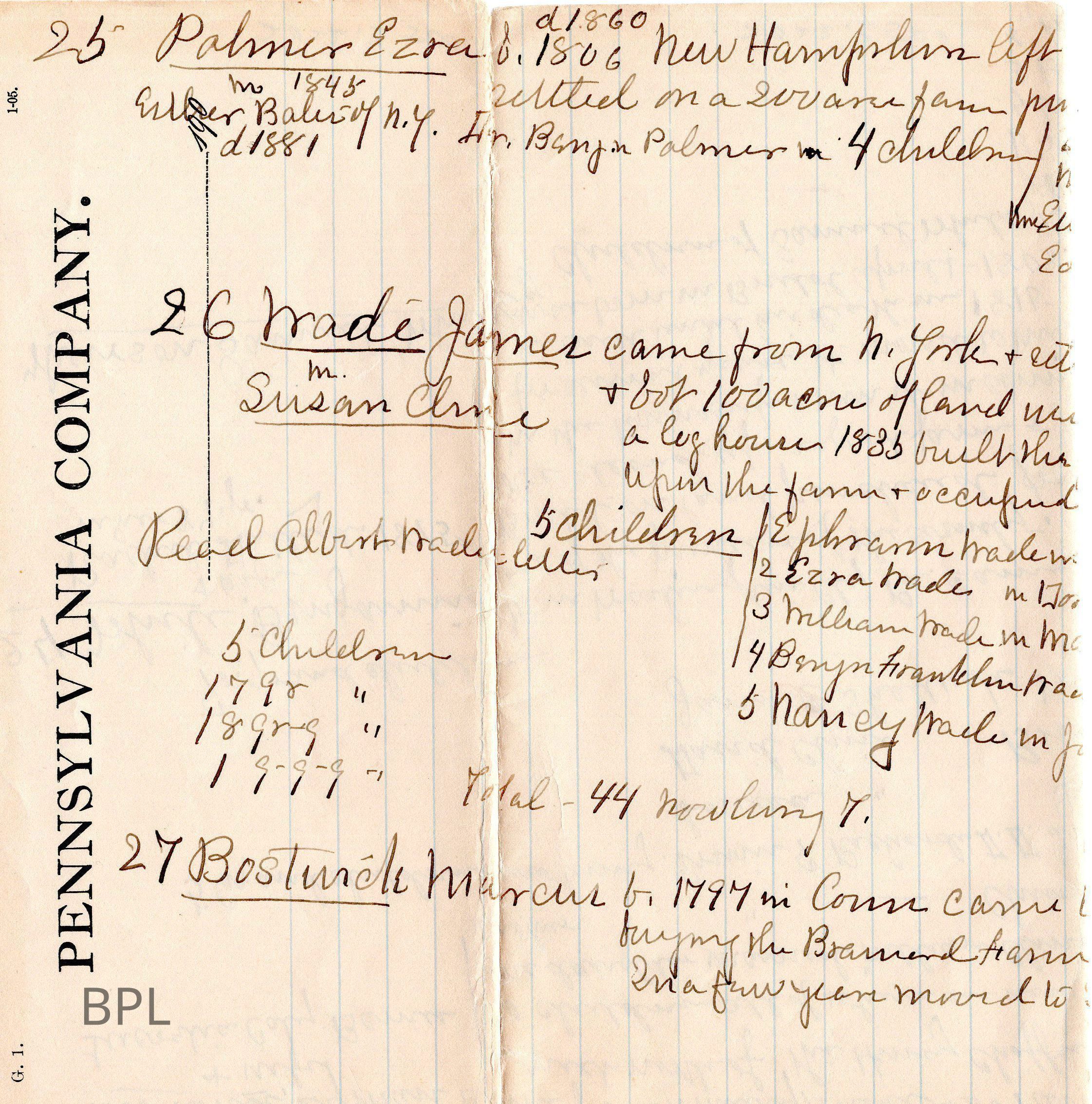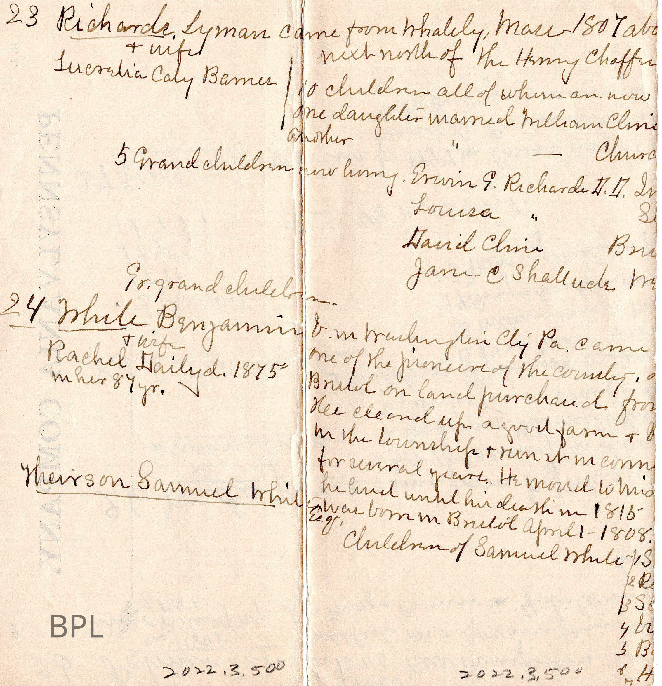 Notes of Lyman Richards HistoryEntry/Object ID