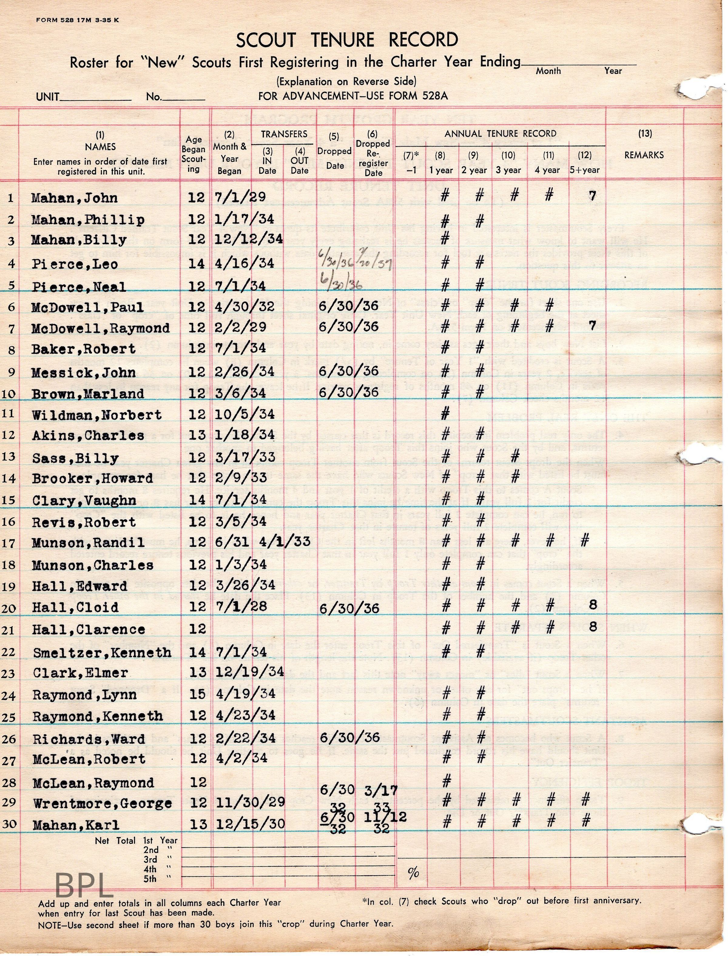 Records of Boy Scouts, 1929-1938Entry/Object ID