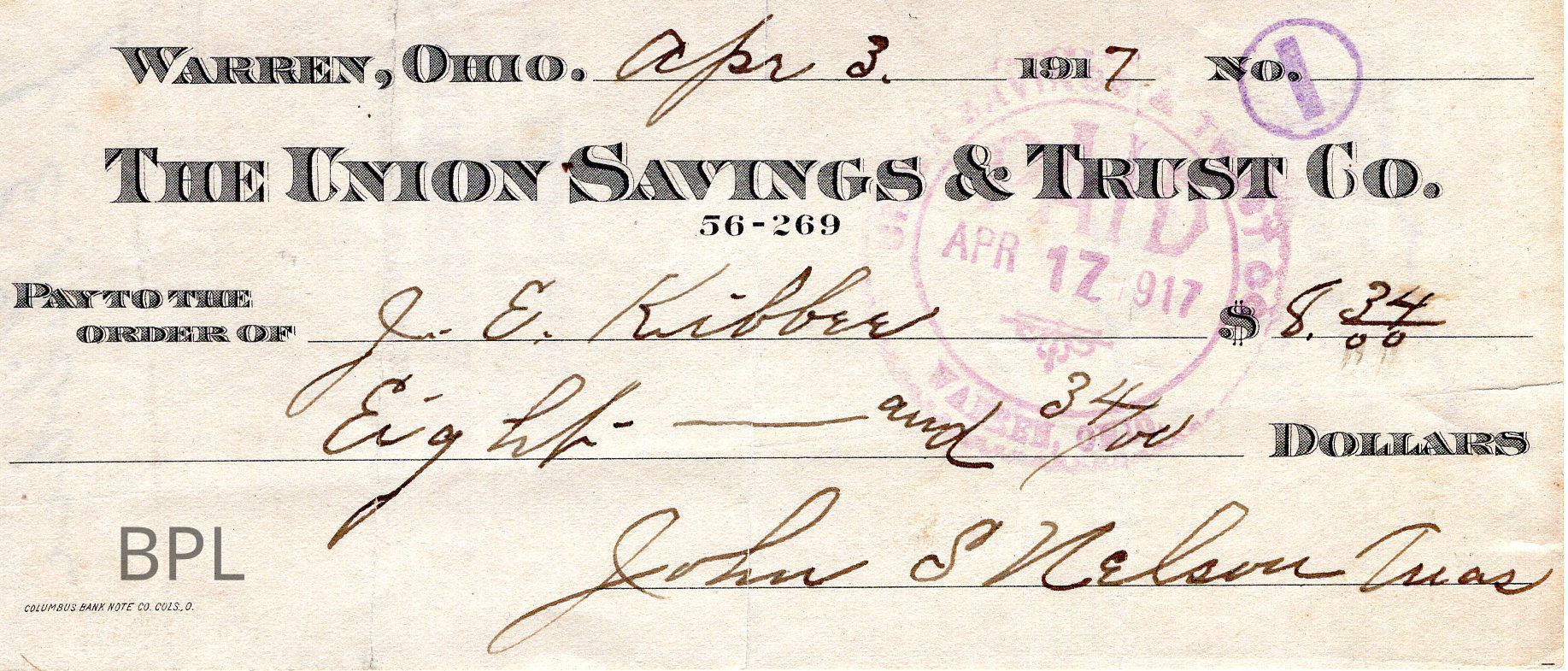 Receipt to J. E. Kibbee from John S. NelsonCataloged By