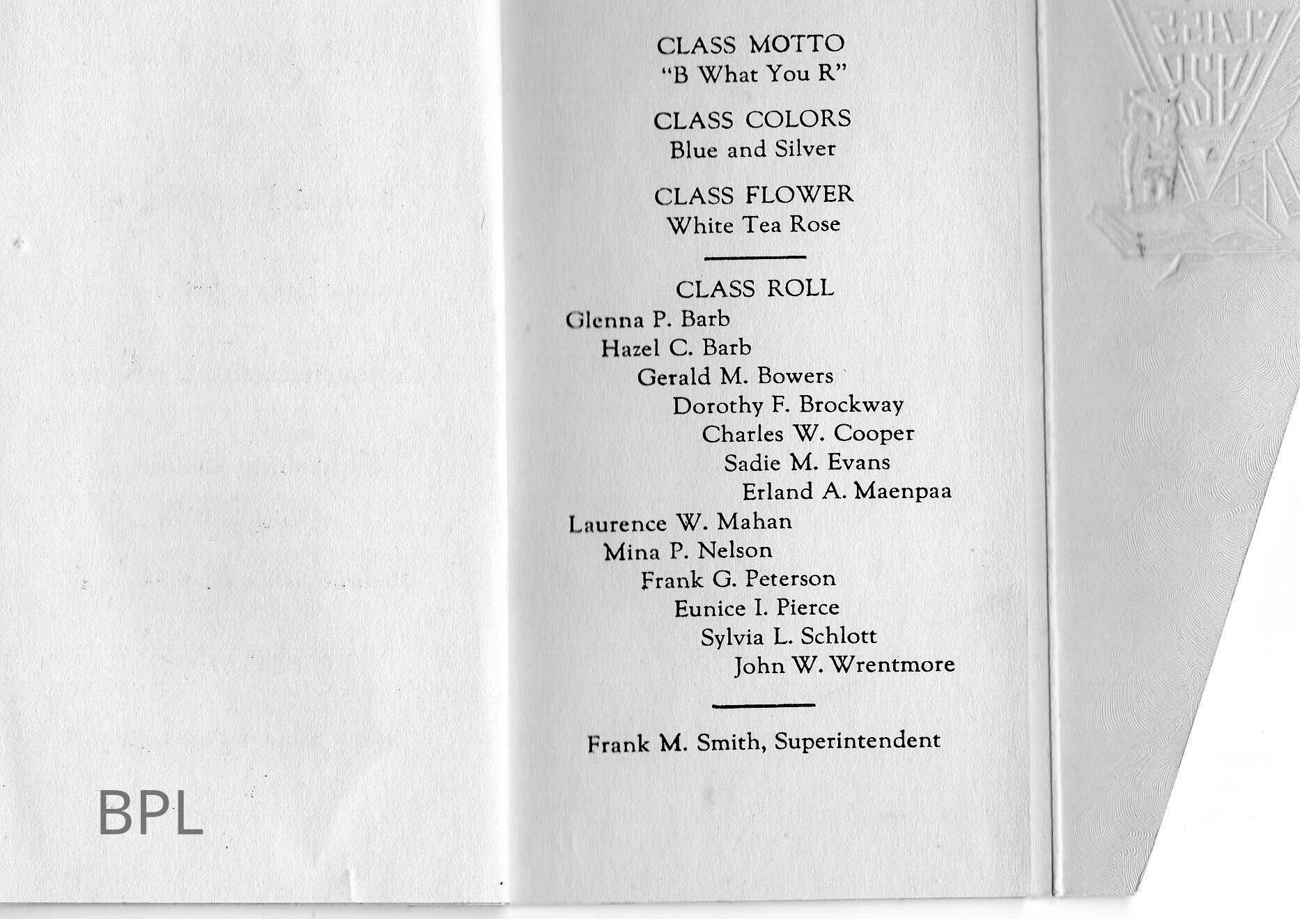 1929 Bristol High School Graduation AnnouncementMay 9thCataloged By