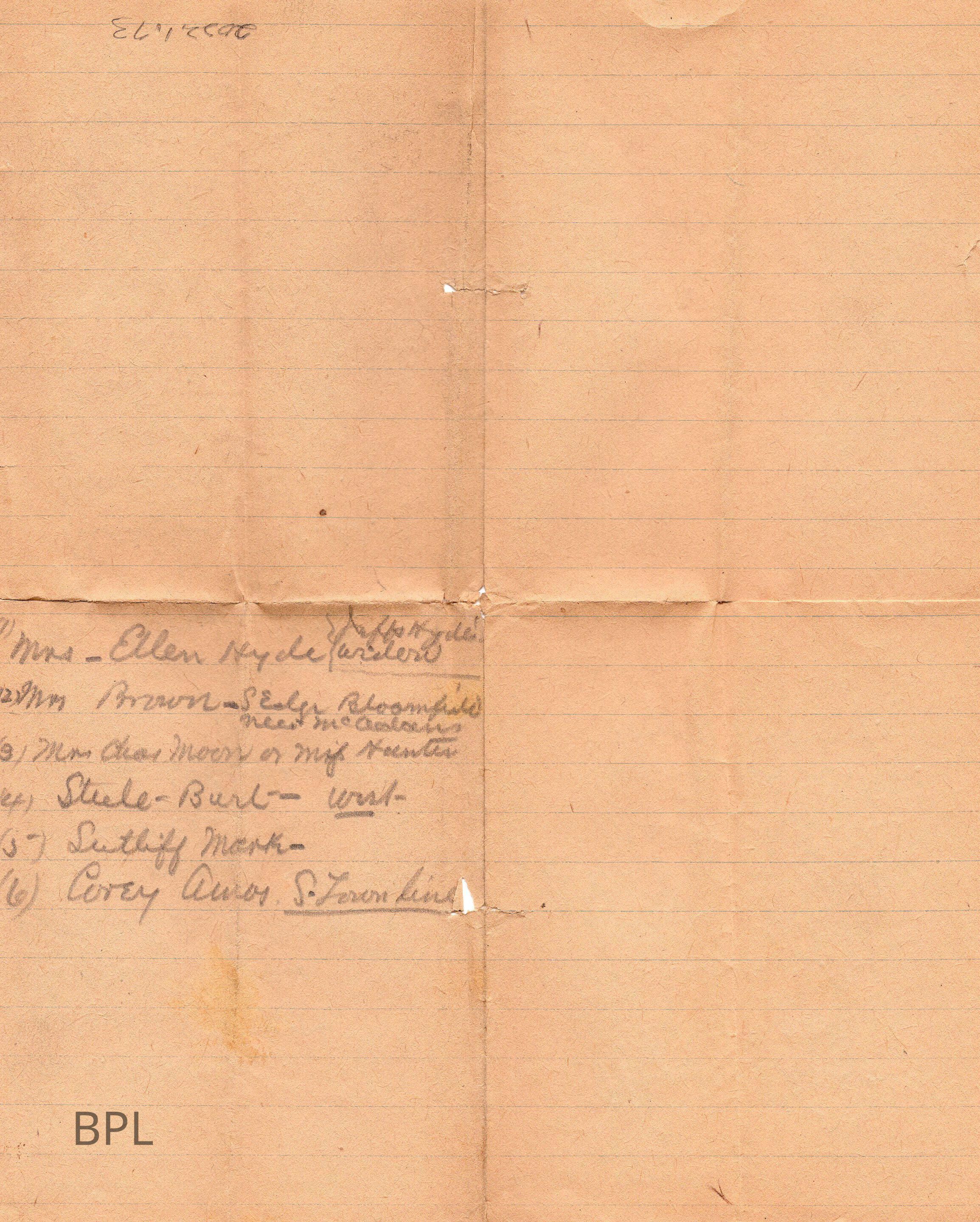 Folder: Undated Early Library CorrespondenceResearch Notes