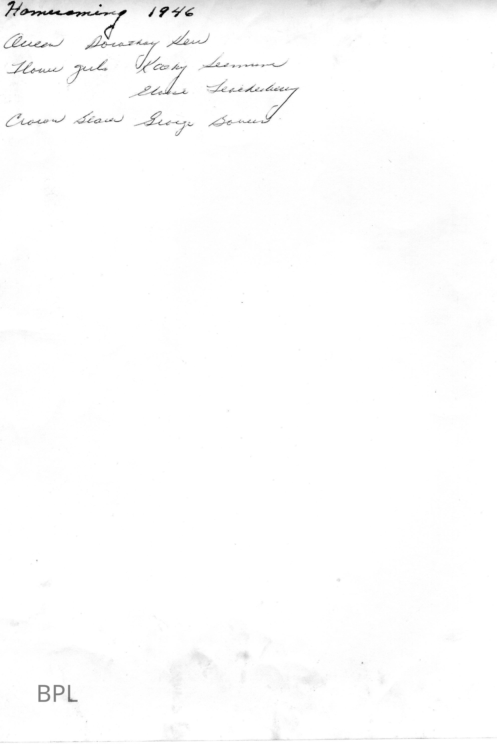 Photo Bristol High School Homecoming, 1946. Dorothy Kerr, QueenCataloged By