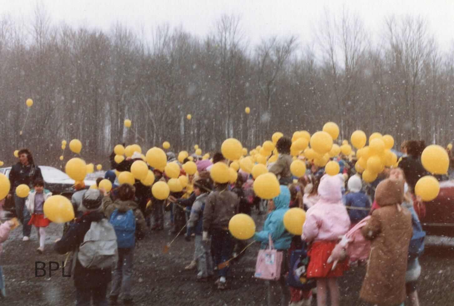 Bristol students ready for balloon launch to celebrate 75th anniversary of Bristol Public Library, November 15, 1987Cataloged By